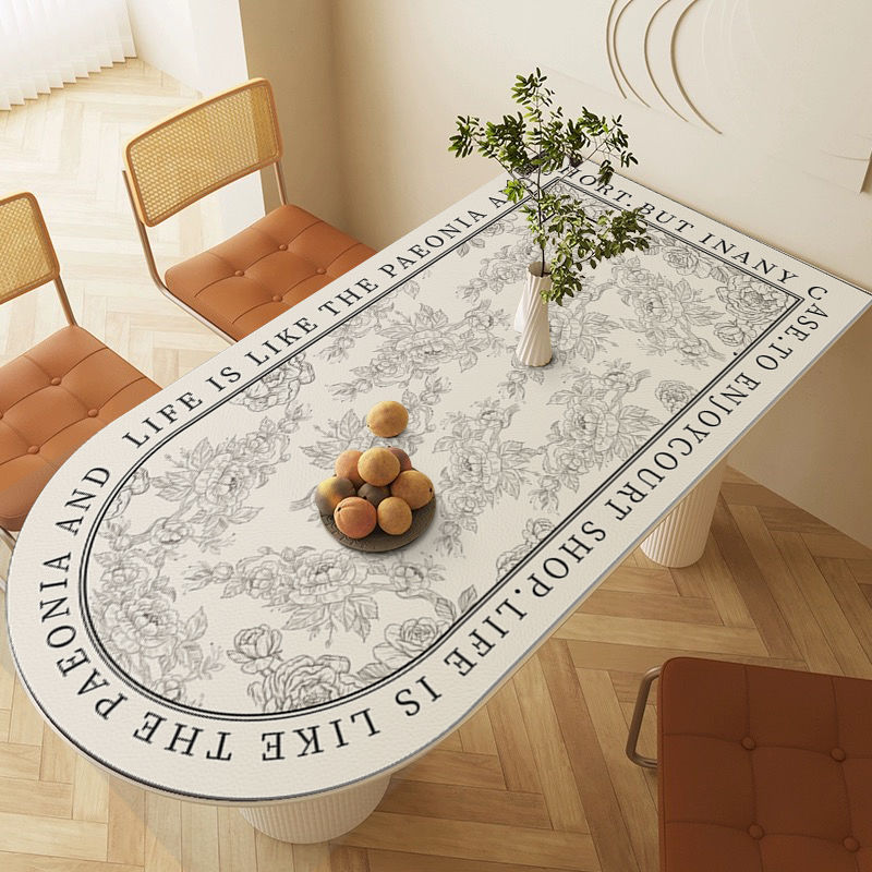 岛台桌垫奶油风半圆弧形防水防油免洗防烫桌布法式高级感椭圆台布 - Fortune House