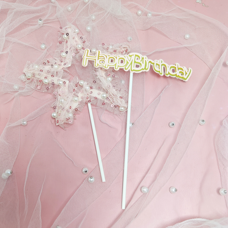 纱花珍珠星星HB插件烘焙生日蛋糕装饰插旗甜品台派对五角星梦幻新