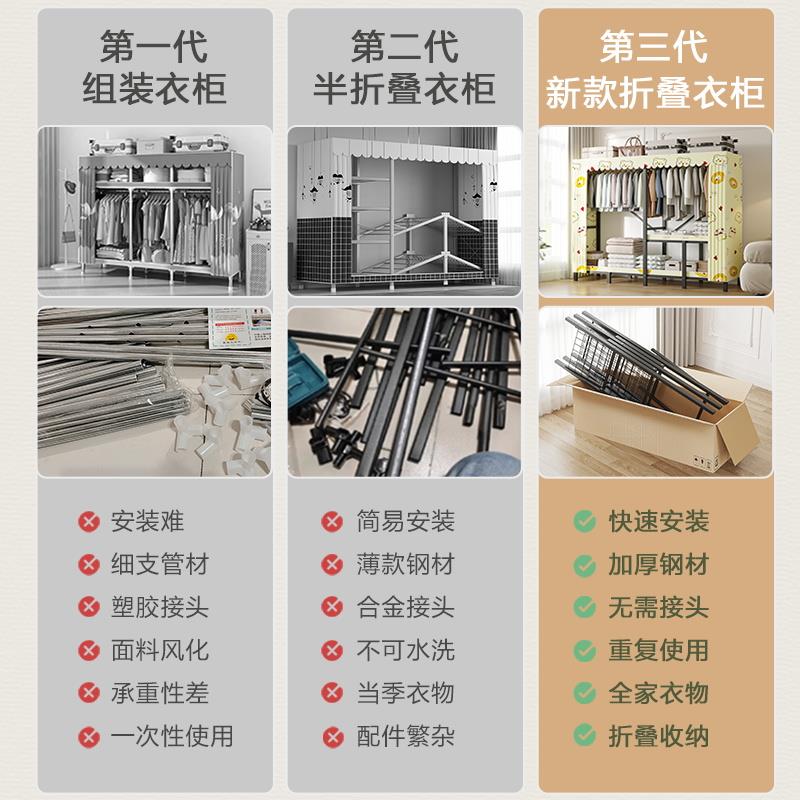 免安装衣柜家用卧室折叠简易出租房用布衣柜全钢架结实耐用衣橱 - 梦琳商贸城