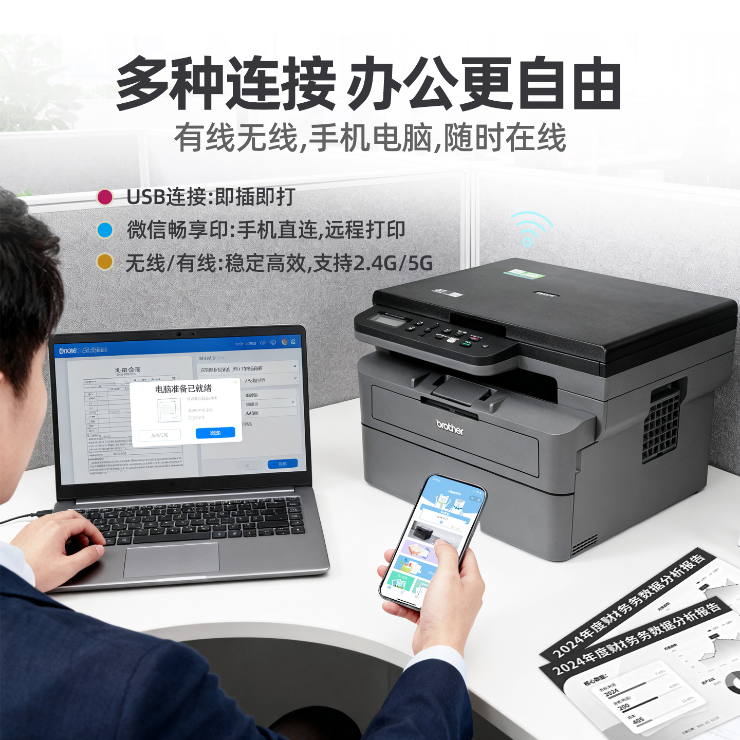 兄弟DCP-L2628dw黑白激光自动双面打印机一体机办公专用L2648dw连续复印扫描多功能手机电脑无线家用高速商用