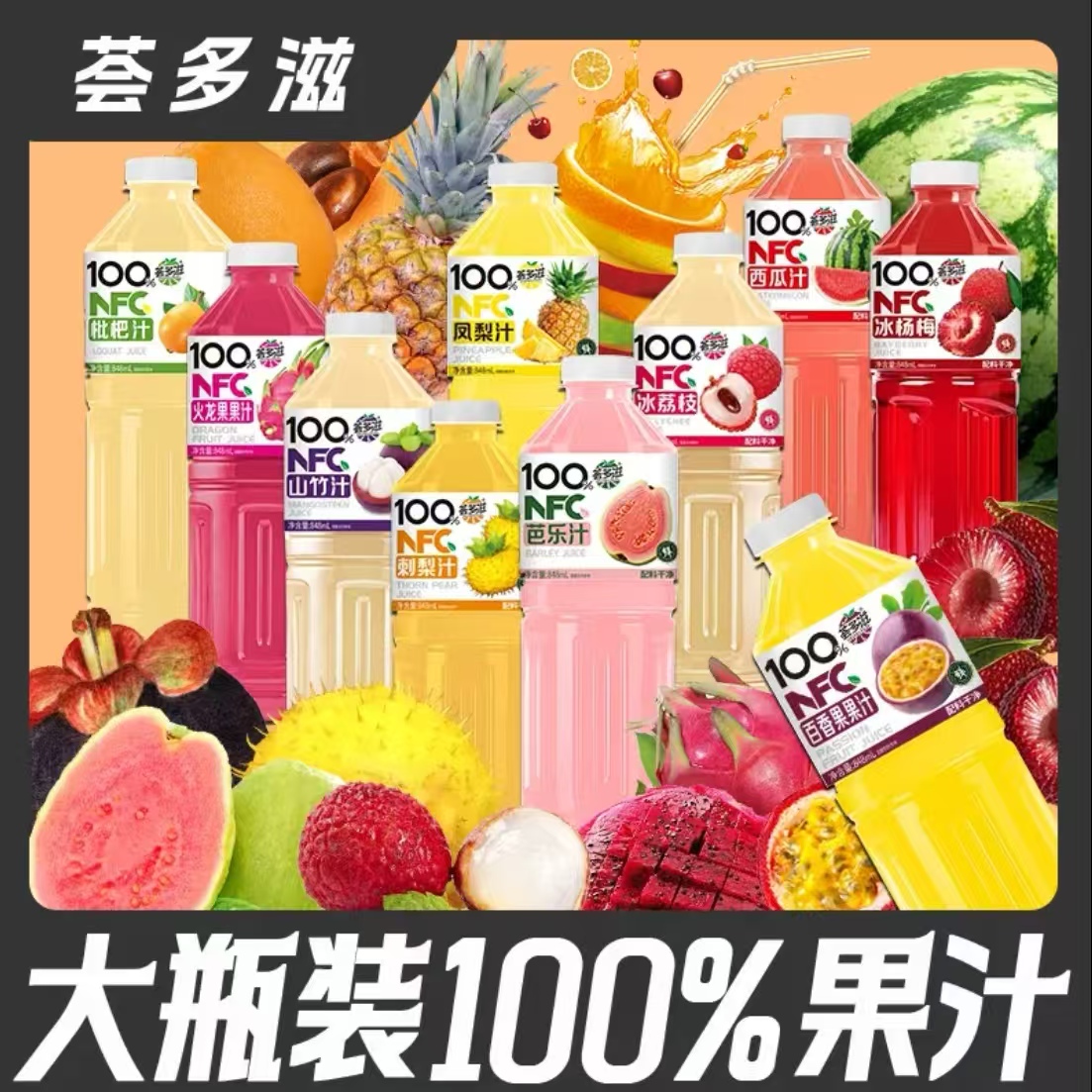 【100%NFC果汁饮料】十种口味西瓜汁山竹汁芭乐汁大瓶装整箱特价