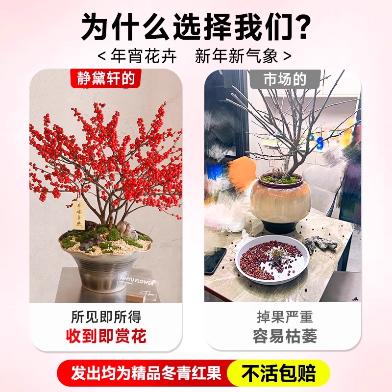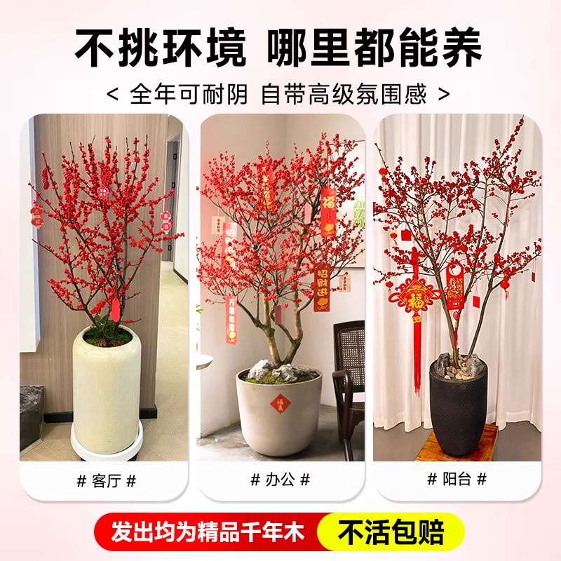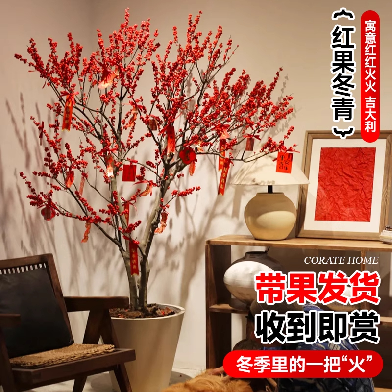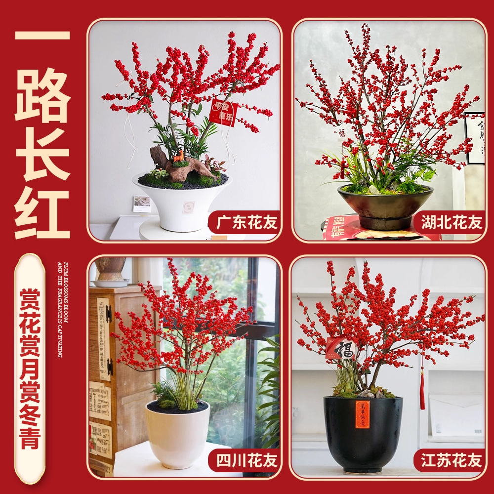 进口北美冬青盆栽树苗耐寒年宵花卉冬红果老桩中国红盆景带盆发货 - 风畔花卉旗舰店