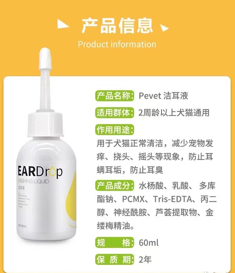 派维洁耳液犬猫通用狗猫2周龄以上耳道清洁发痒挠耳摇头耳垢60ml