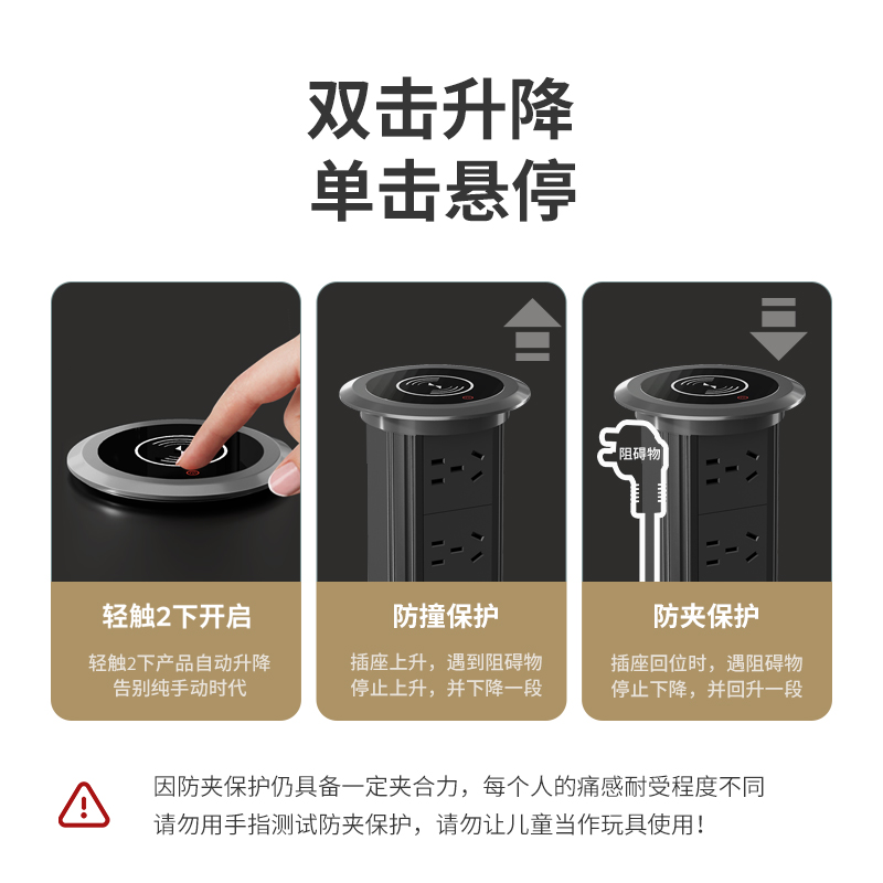 卡西诺电动升降插座岛台桌面桌洞隐藏式电源排插厨房接线板无线充 - 卡西诺家居电气旗舰店