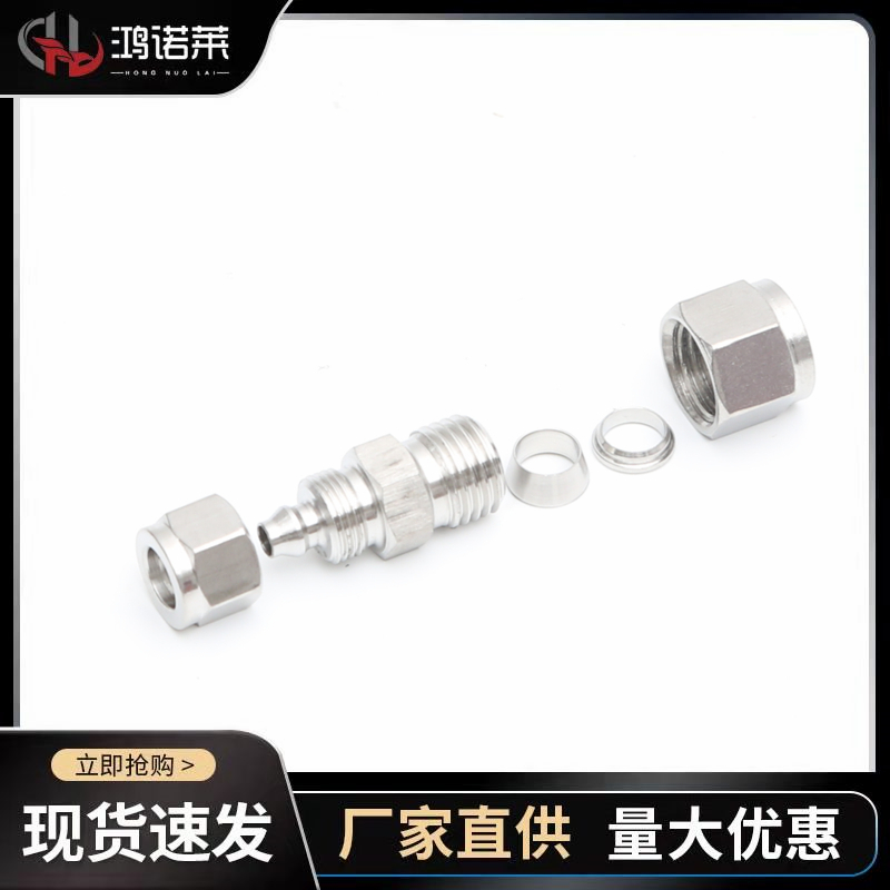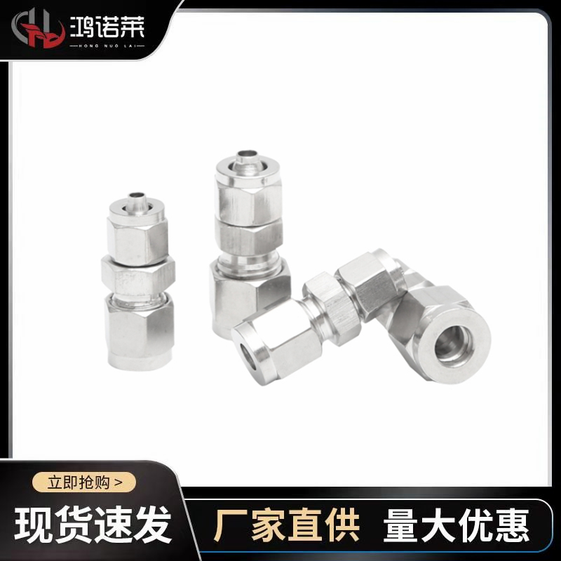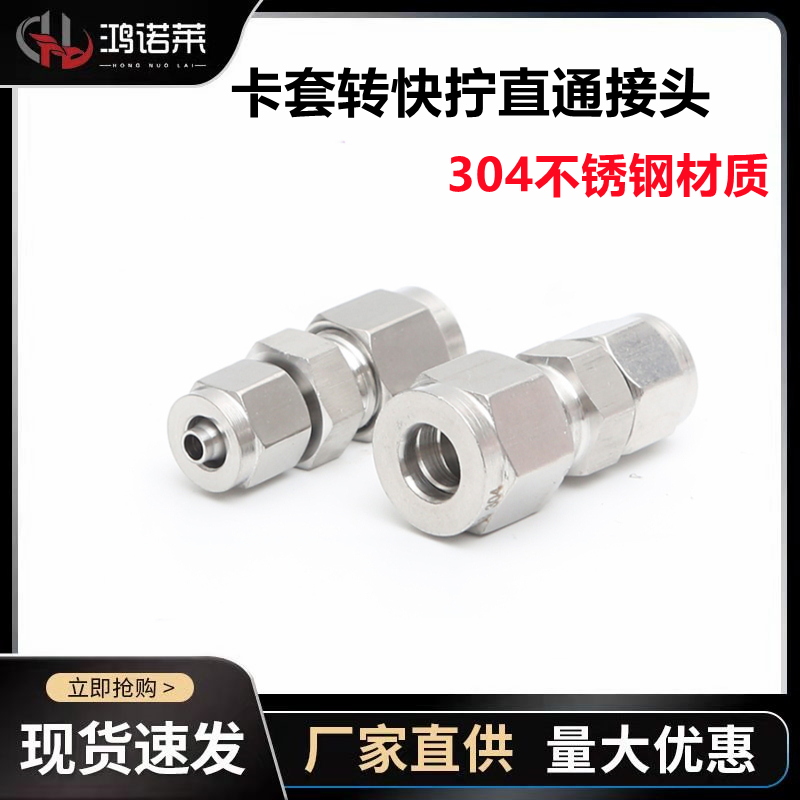 304不锈钢快拧锁母转卡套接头硬管钢管铜管转PU软气管卡套6-软6*4 - 东台市鸿诺金属制品有限公司