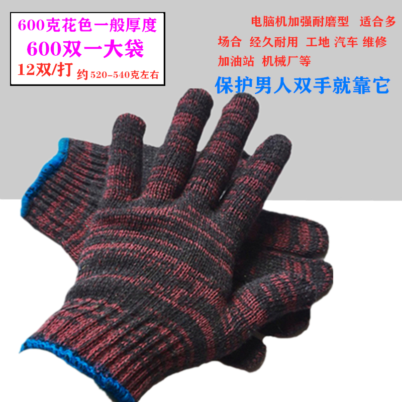 600克花色手套劳保 耐磨工作加厚机械修理男女士模具搬运纯棉纱线