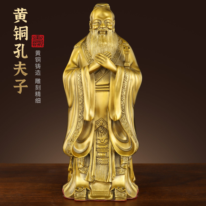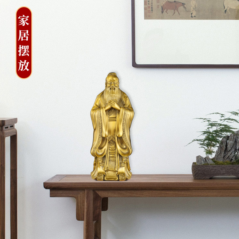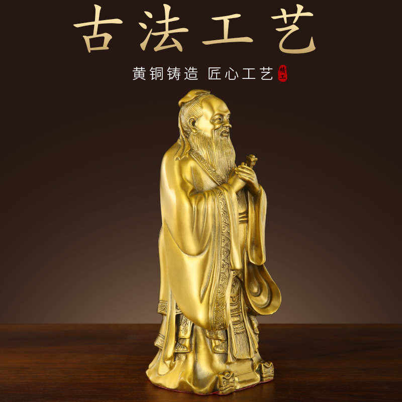 铜孔子摆件家用玄关纯黄铜孔夫子办公室桌面铜孔子像店铺开业礼品 - 雨寒工厂直店