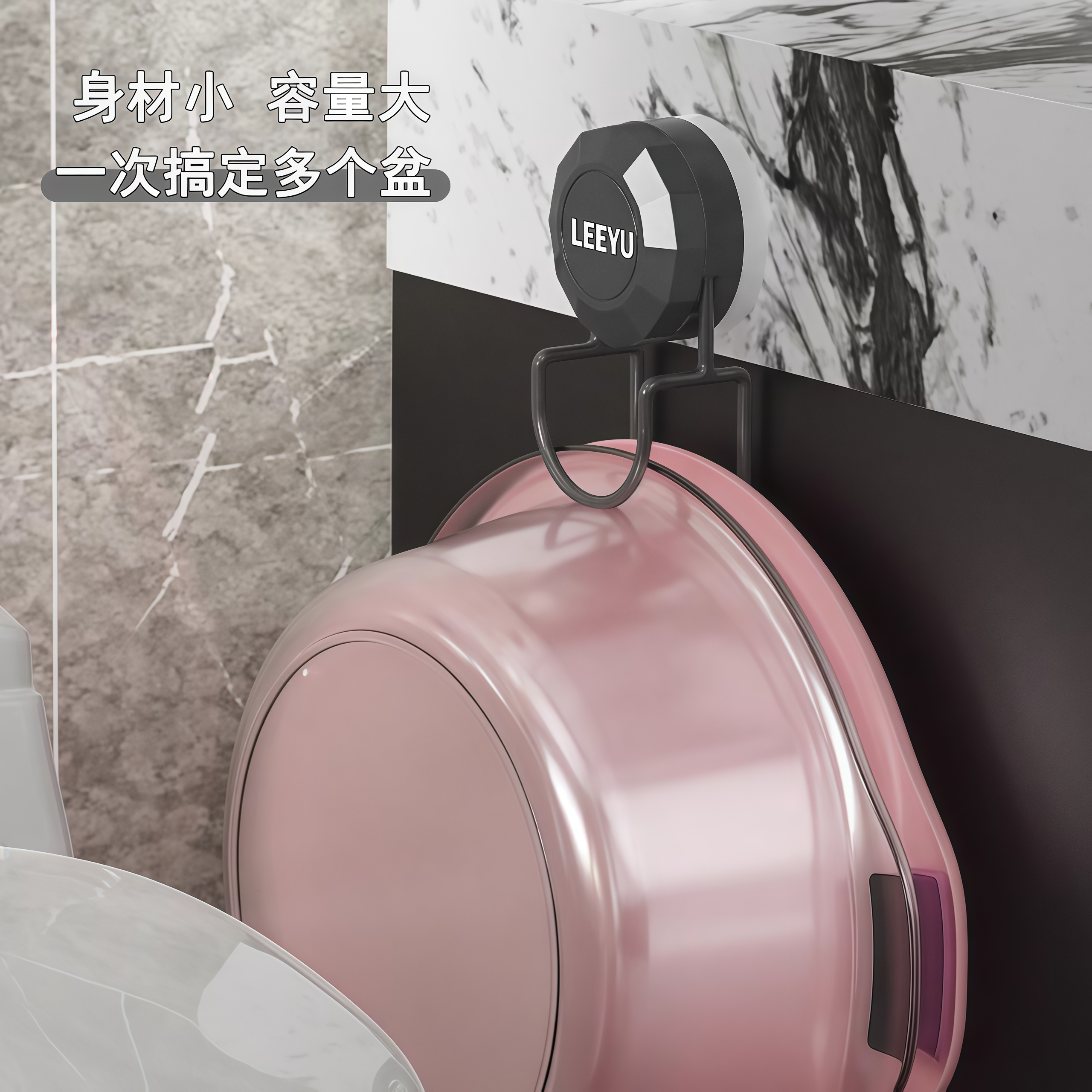 旋转吸盘卫生间脸盆架挂钩收纳架强力置物架盆子免打孔壁挂式挂盆 - 余裕百货商城