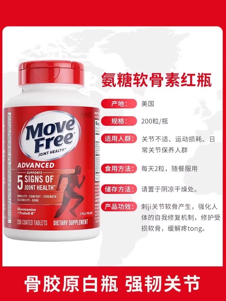 美国Move Free益节维骨力氨糖健康关节红瓶软骨素红瓶关节灵高钙 - Vita环球购