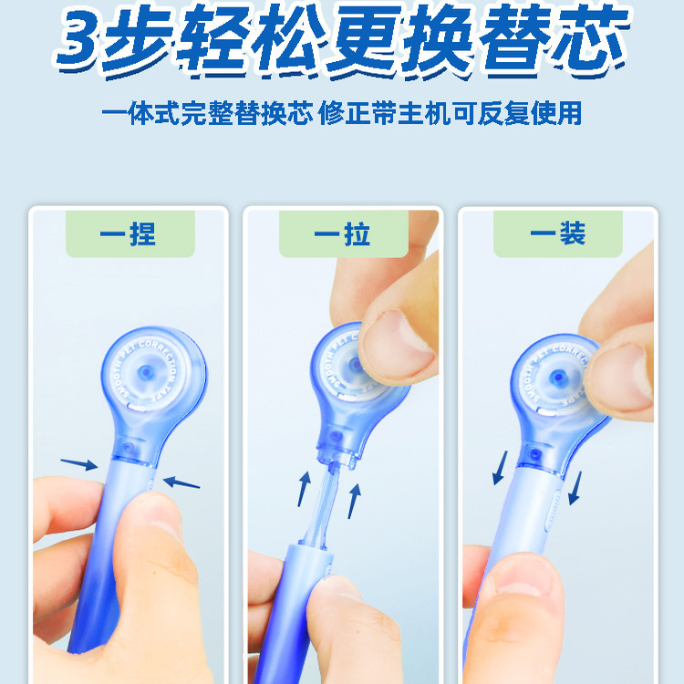 您的位置:他他商城  >   >  笔式修正带可换替芯学生用网红黑科技涂改乐普生大容量改错涂改带