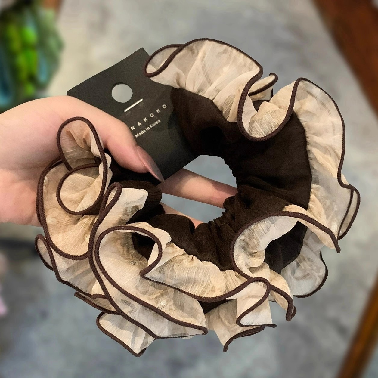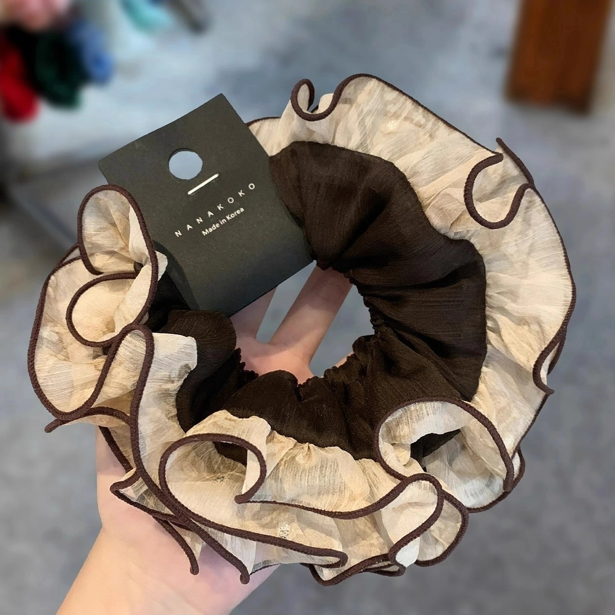 韩国新款小众双层撞色绢纱木耳边肥肠圈立体饱满扎发圈丸子头花女 - 满目琳琅
