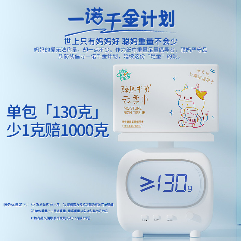 聪妈臻厚牛乳云柔巾6层加厚母婴适用超舒适宝宝专用乳霜纸巾 - 天真亮旗舰店