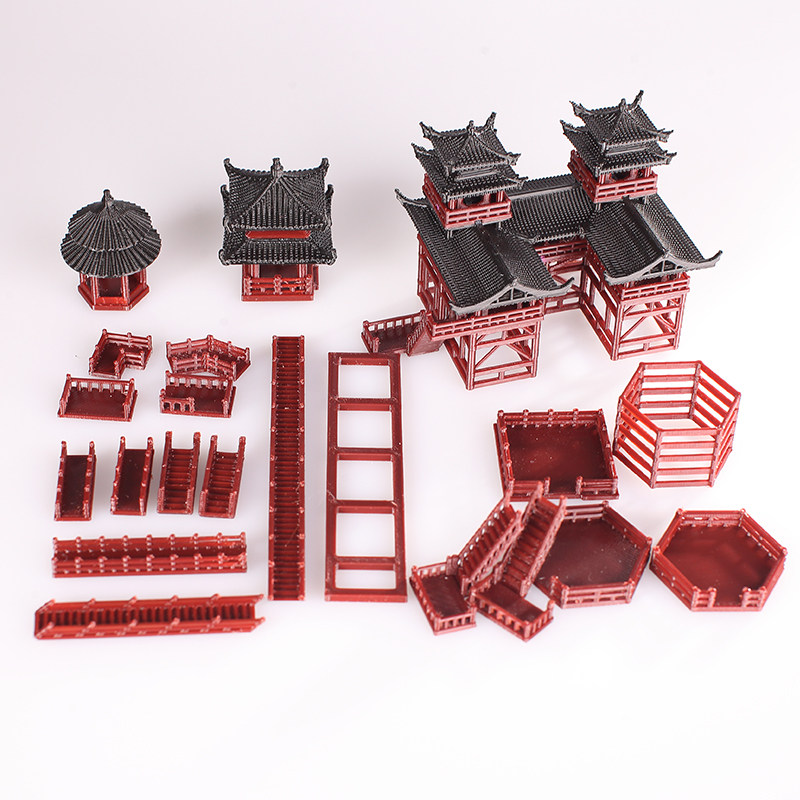 双子楼造景小摆件假山奇石水陆缸鱼缸庭院盆景书房中式古建筑模型 - 墨痕斋商城