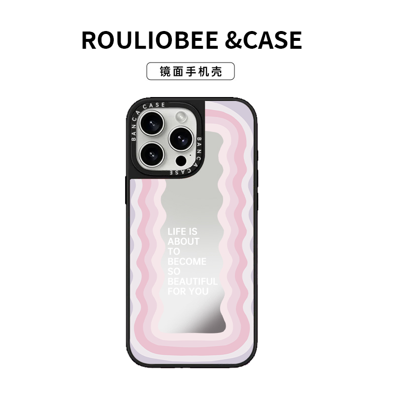 镜面励志波浪语录16Pro适用iPhone15ProMax新款苹果14Pro卡通英文彩色13明星可爱手机壳12防摔15plus硬壳11女