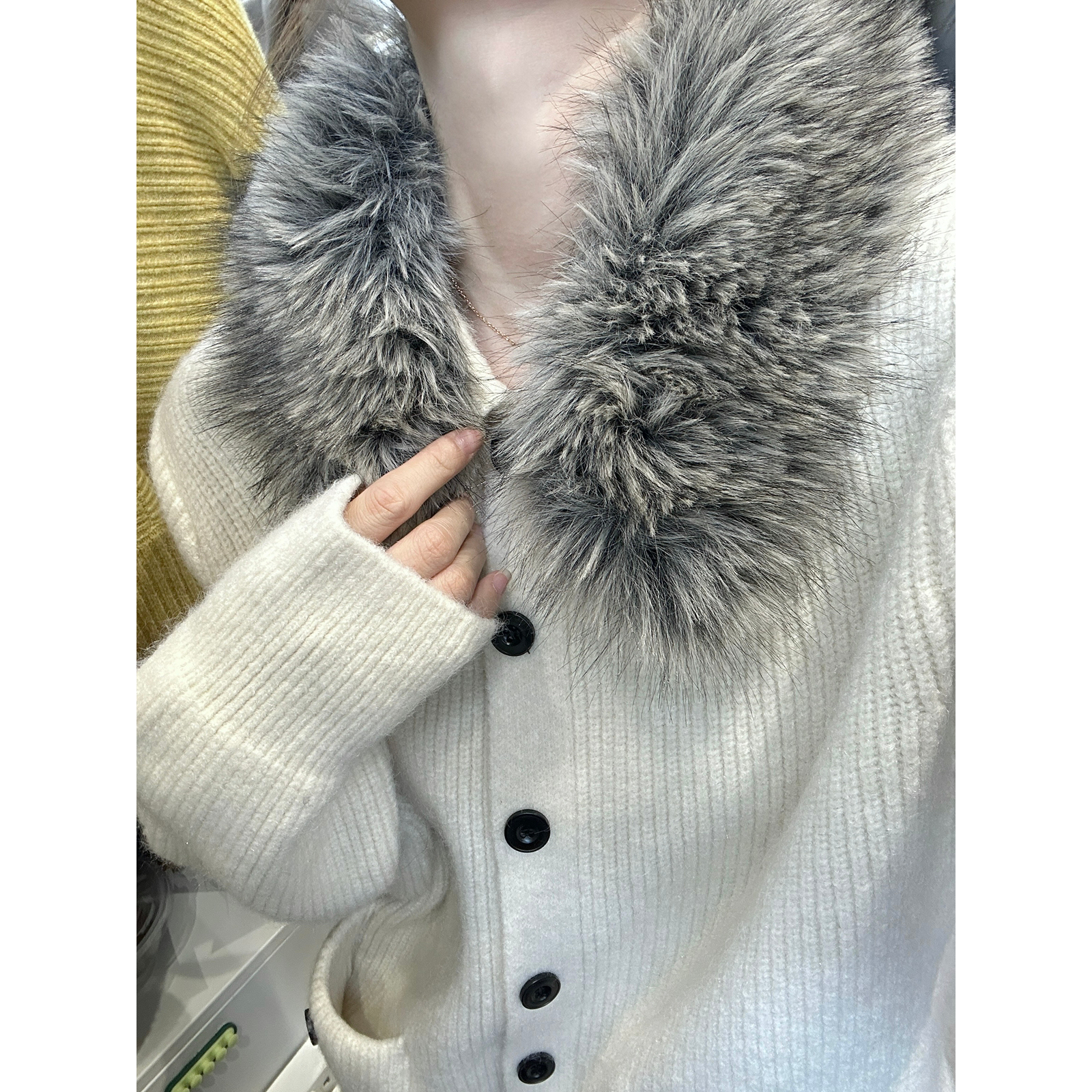 VI+(唯一家)-口袋翻领单排扣加厚保暖毛衣(配可拆卸仿毛领)5600 - Solo17女装