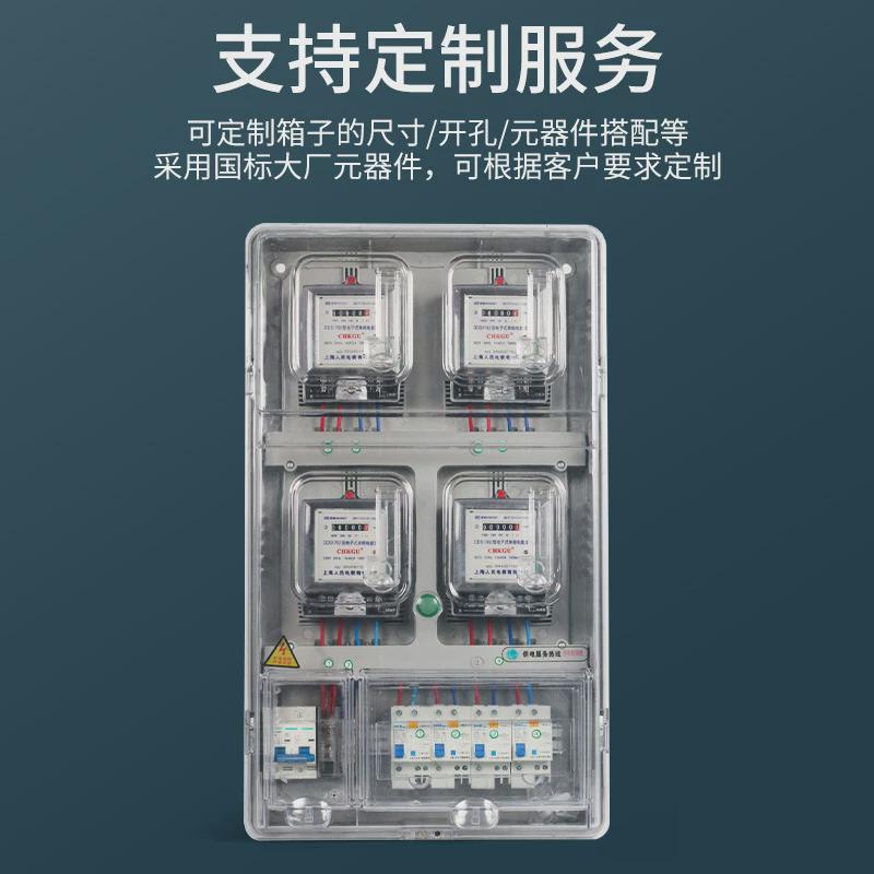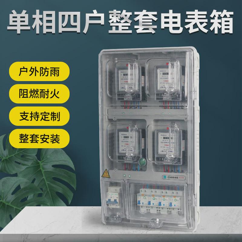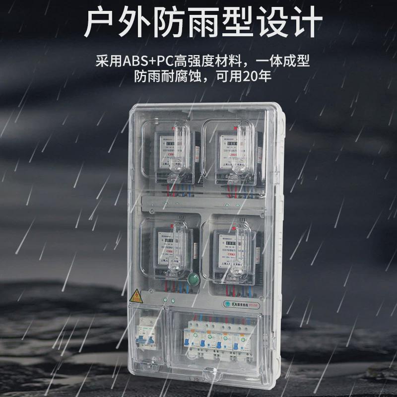 单相四户电表箱家用室外防水塑料透明整套电表盒出租房4表位