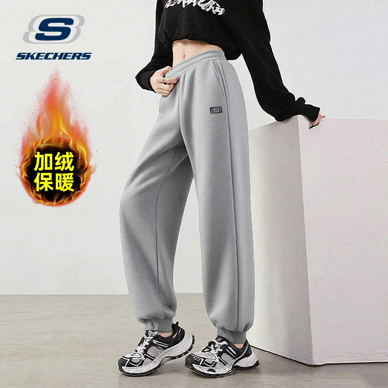 斯凯奇灰色运动裤女士2025新款休闲裤哈伦小个子束脚卫裤加绒裤子 - SKECHERS斯凯奇卓瑞专卖店