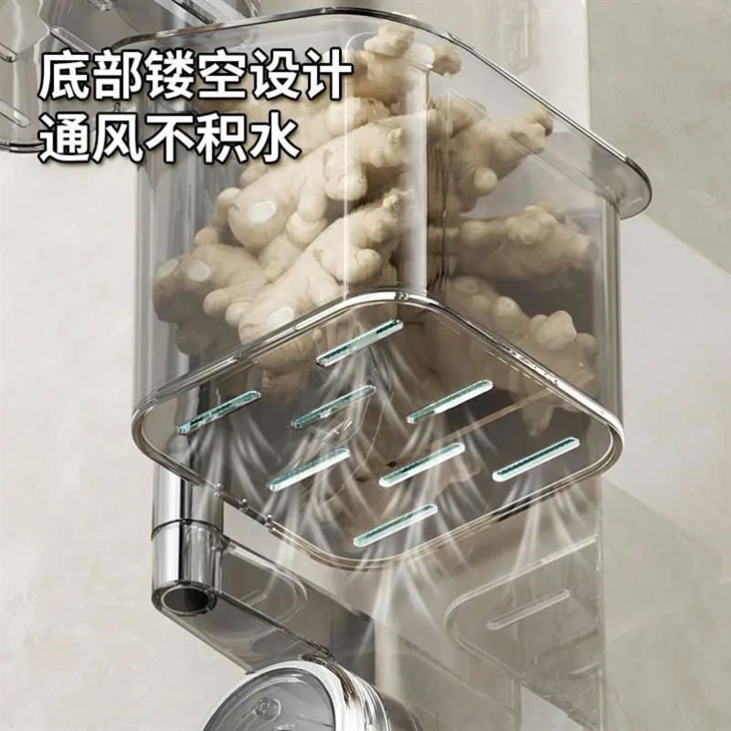 您的位置:他他商城  >   >  哈乐熊】双吸盘旋转葱姜蒜收纳盒壁挂式厨房大P容量多层收纳置物
