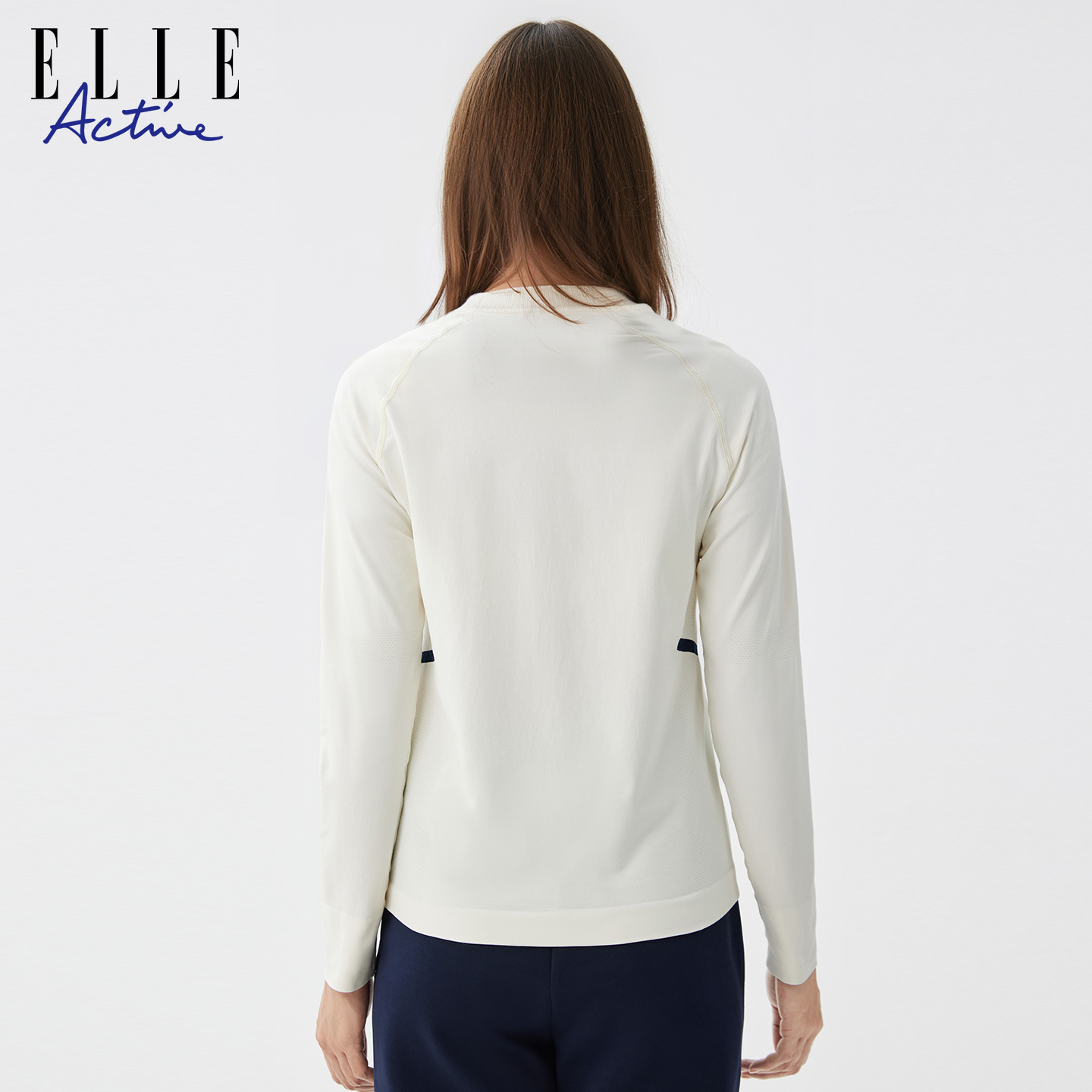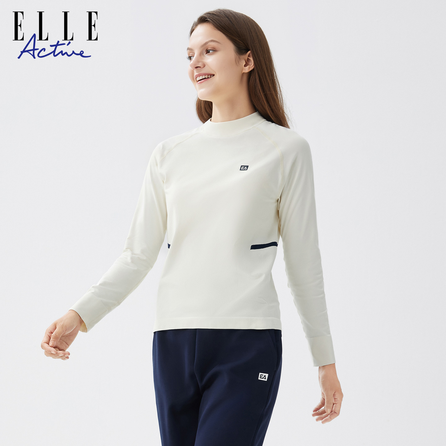 ELLE ACTIVE一体织运动长袖T恤25秋款透气无缝休闲小高领插肩上衣