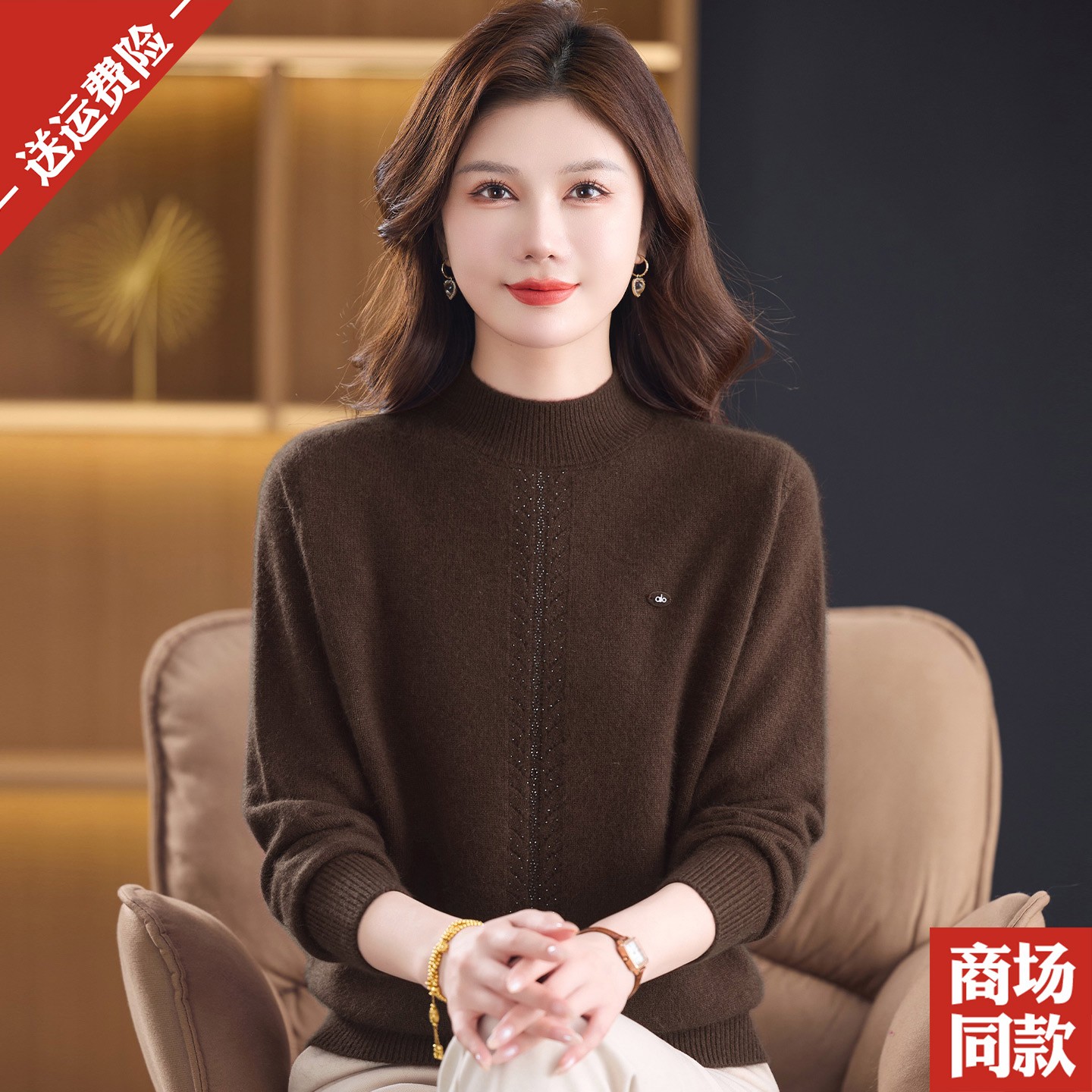 加厚山羊绒衫半高领毛衣女内搭中老年妈妈秋冬保暖红色打底衫套头 - 依氏恋女装店