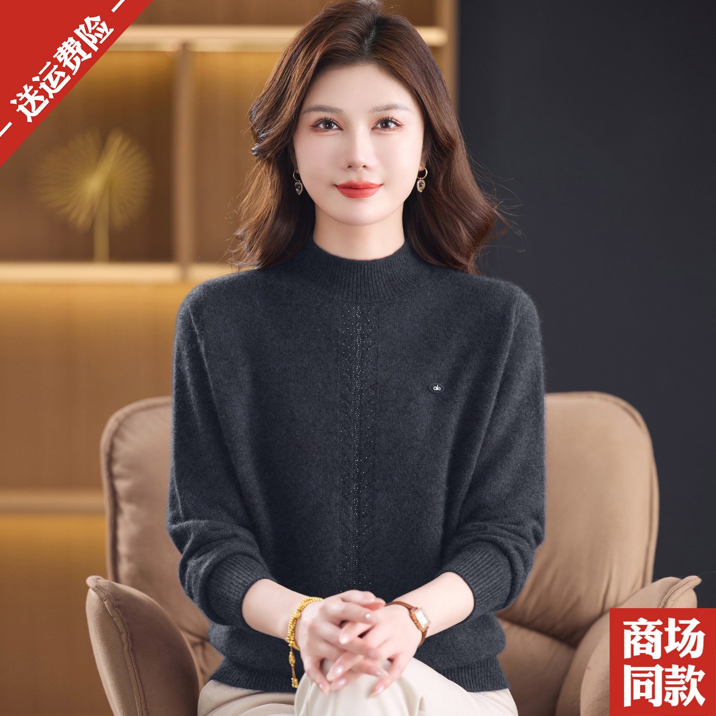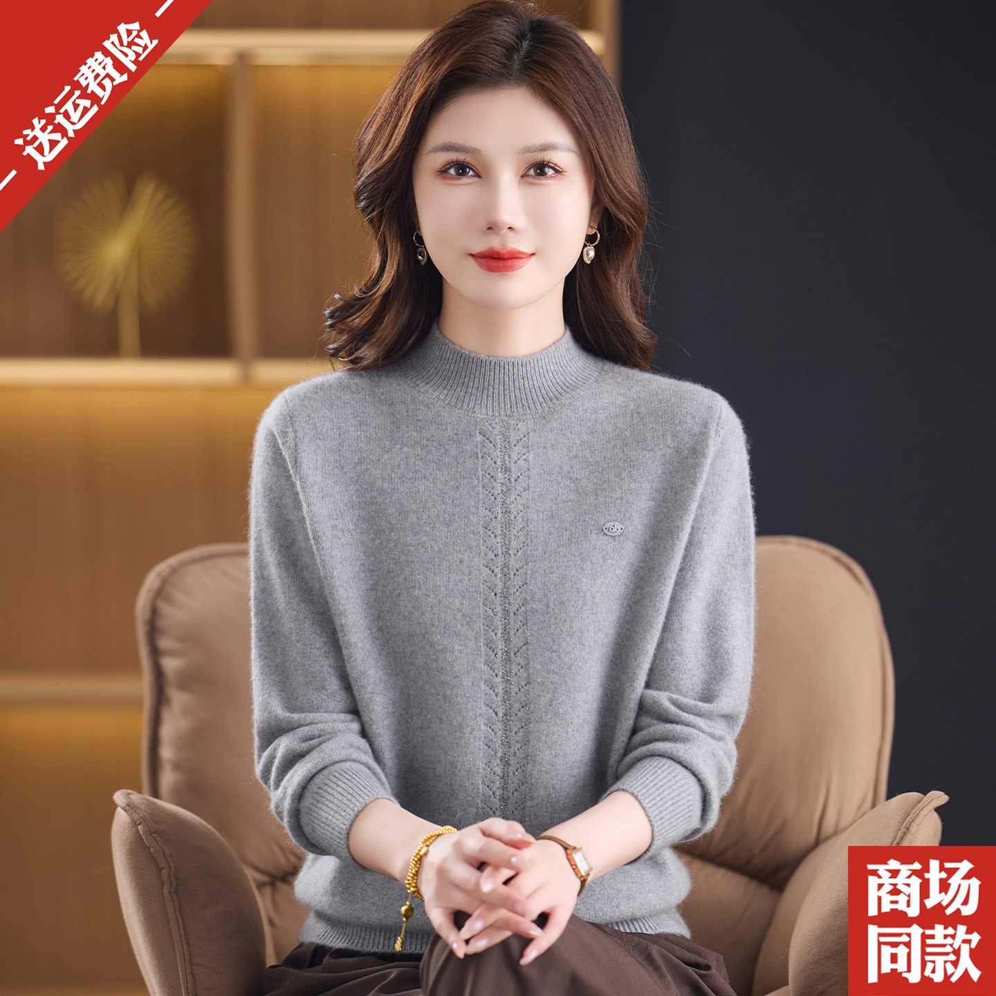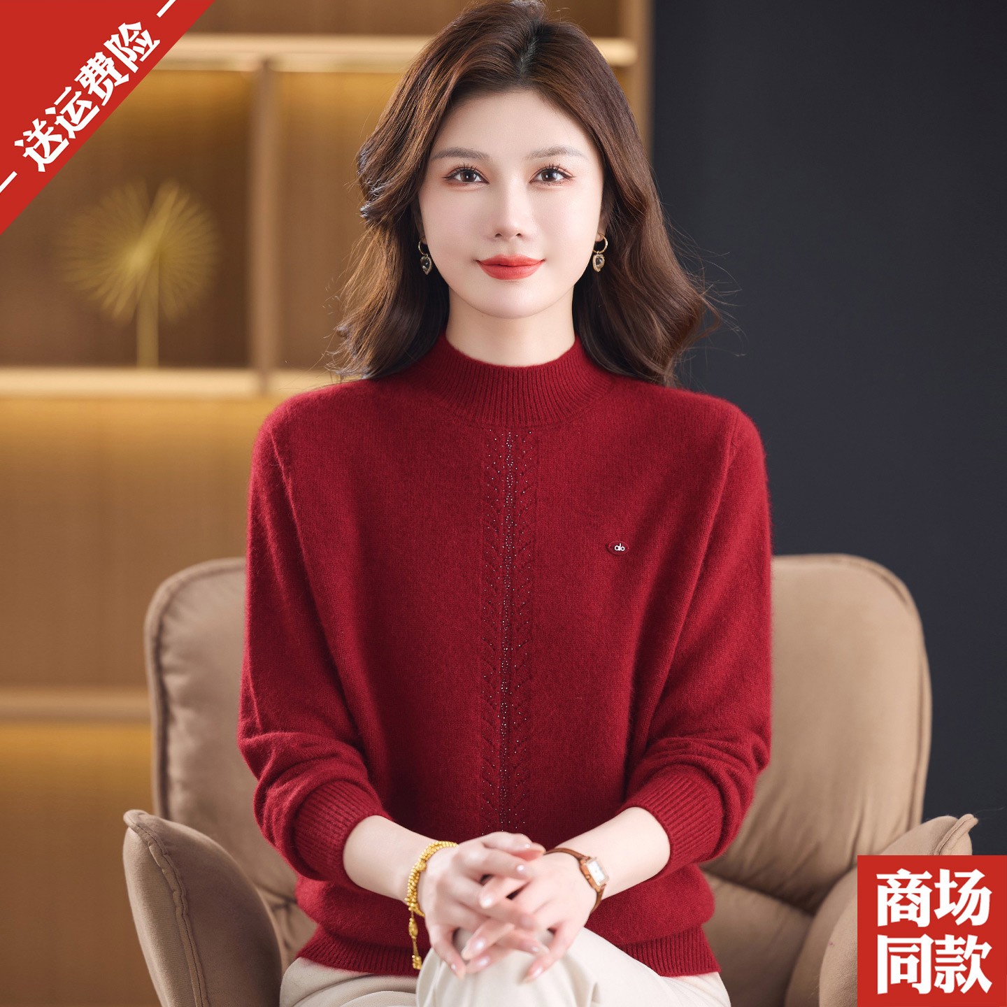 您的位置:他他商城  >   >  加厚山羊绒衫半高领毛衣女内搭中老年妈妈秋冬保暖红色打底衫套头