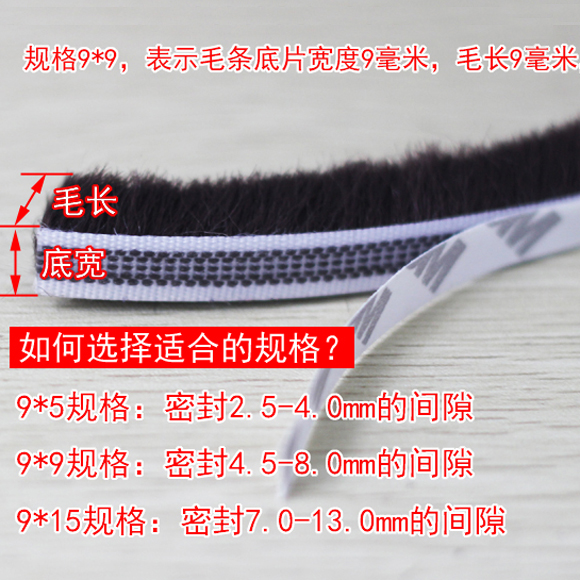 3M背胶隔音门缝防风条防盗门塑钢窗户铝合金门窗密封条自粘型毛条 - 筱萝庄门窗配件实体店