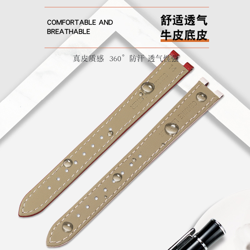 适配天梭嘉丽小美人真皮表带原版替换T126207A女士1853凹口手表带