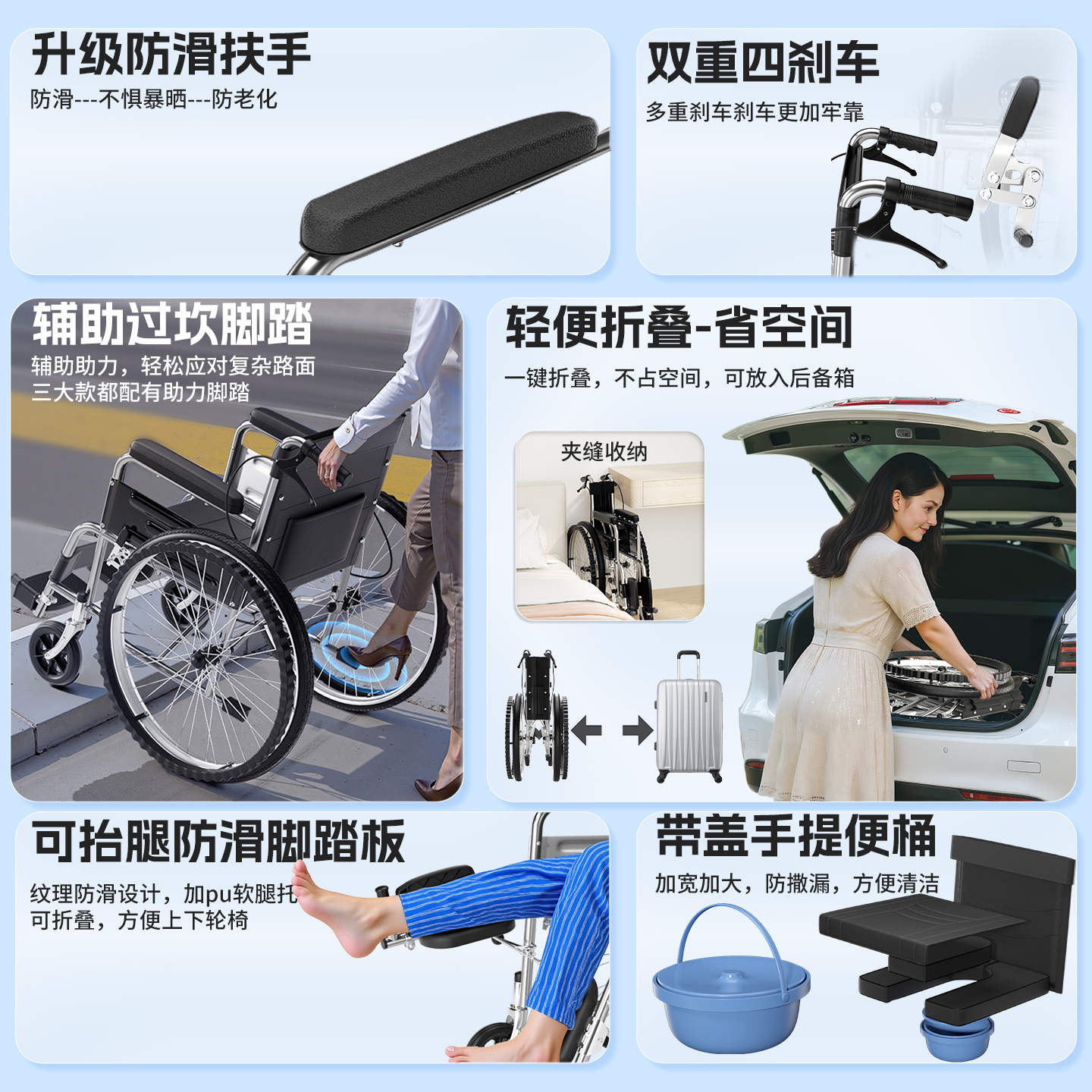 轮椅车老人专用折叠轻便年轻人骨折瘫痪小型可上厕所便携可推可坐