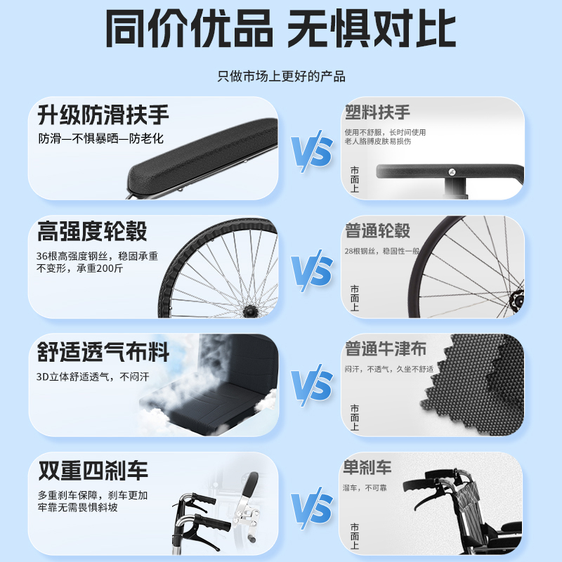 轮椅车老人专用折叠轻便年轻人骨折瘫痪小型可上厕所便携可推可坐 - 圣迪欧旗舰店
