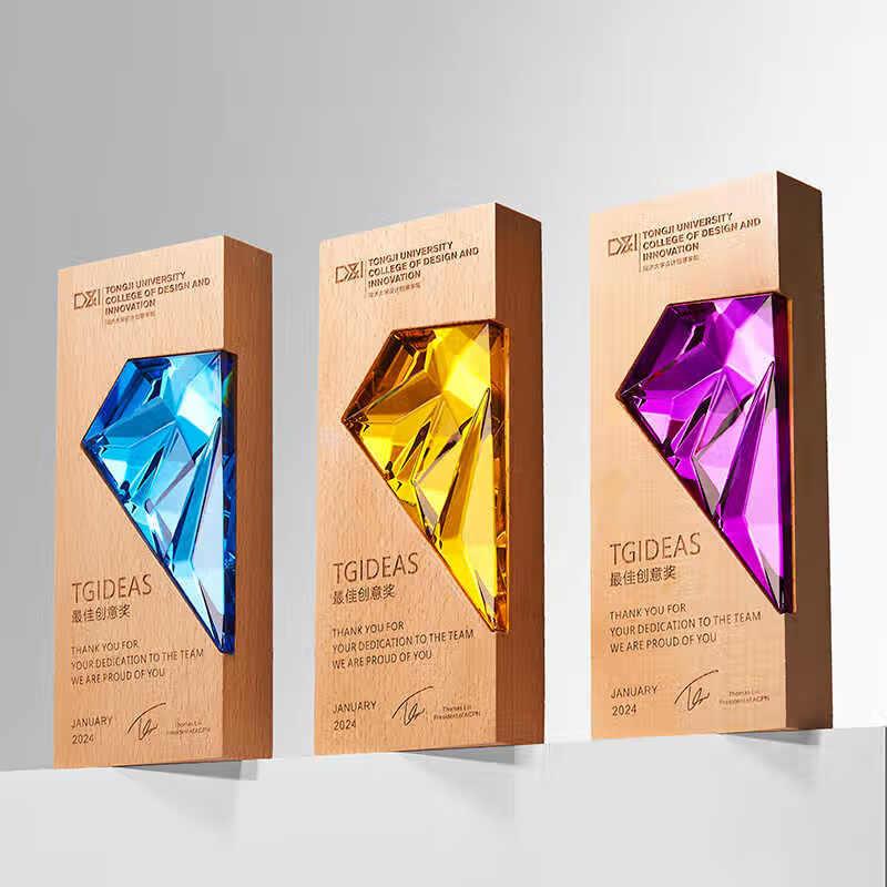 新款实木炫彩水晶奖杯定制激光雕刻奖牌优秀员工年会颁奖嘉奖纪念