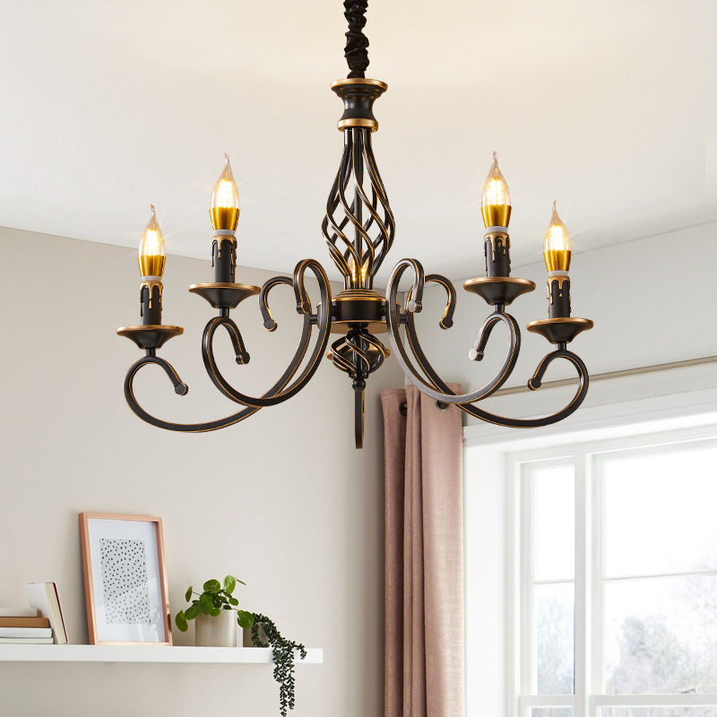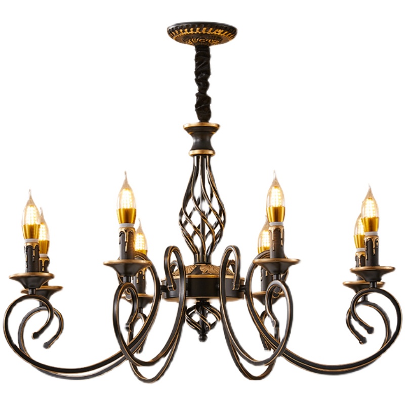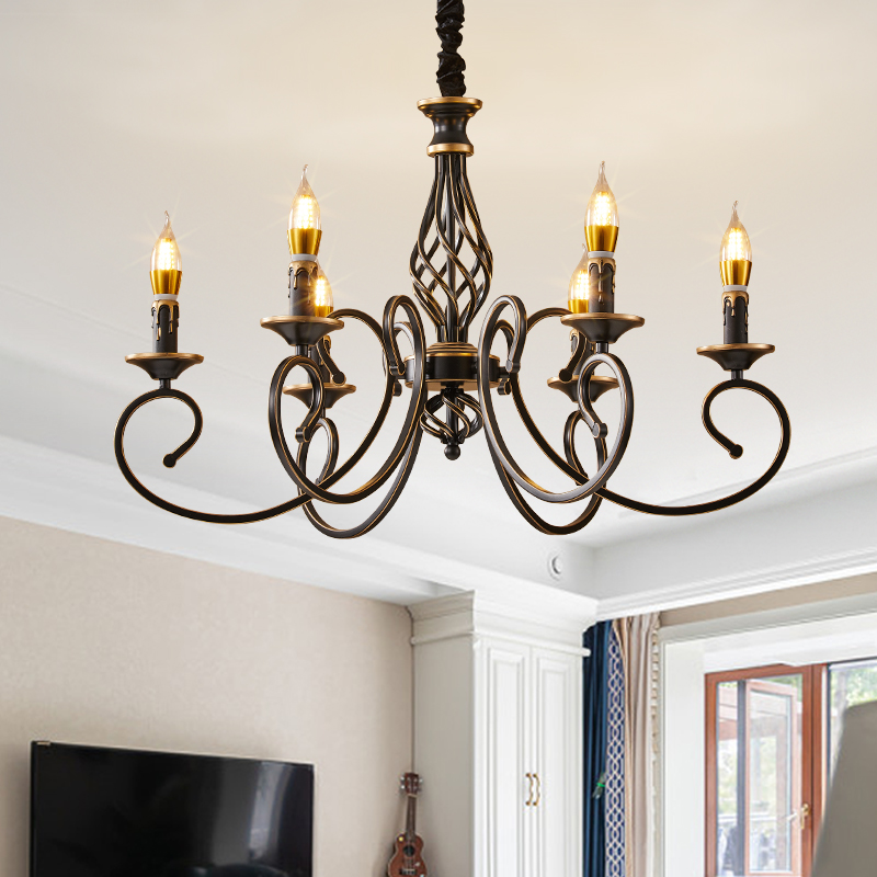蜡烛吊灯美式简约乡村客厅餐厅灯具复古轻奢创意欧式书房卧室吊灯 - 美华庭灯饰企业店