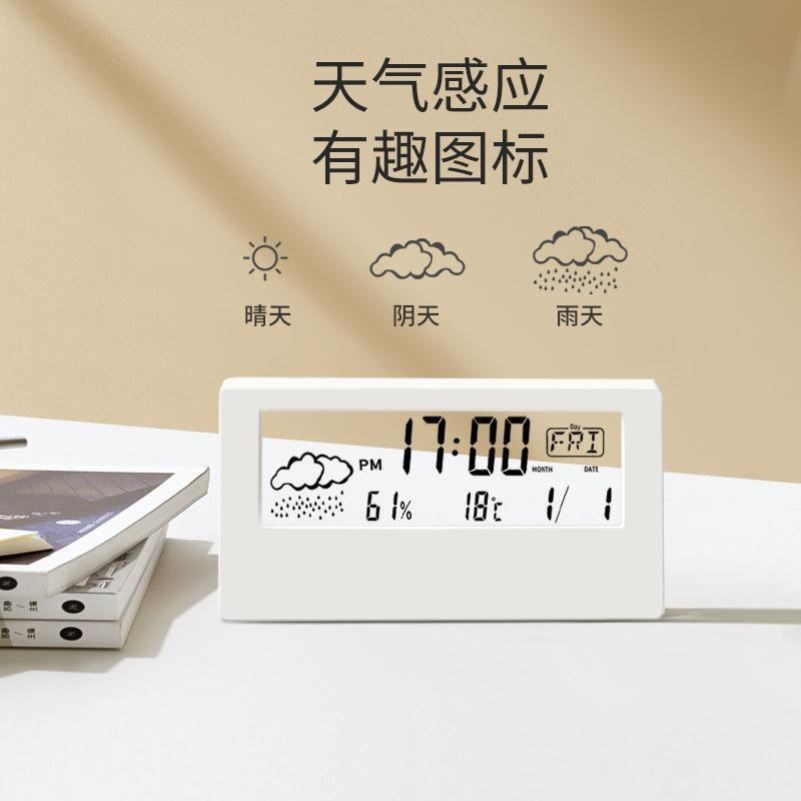 日本LED静音智能天气电子钟表ins桌面时钟万年历台式透明学生闹钟 - 婕敏敏小店