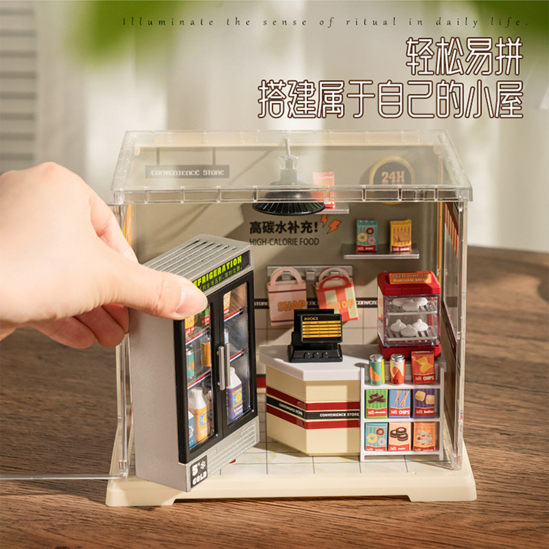 儿童妙趣空间diy小屋微缩咖啡店便利店模型灯光积木场景立体拼图