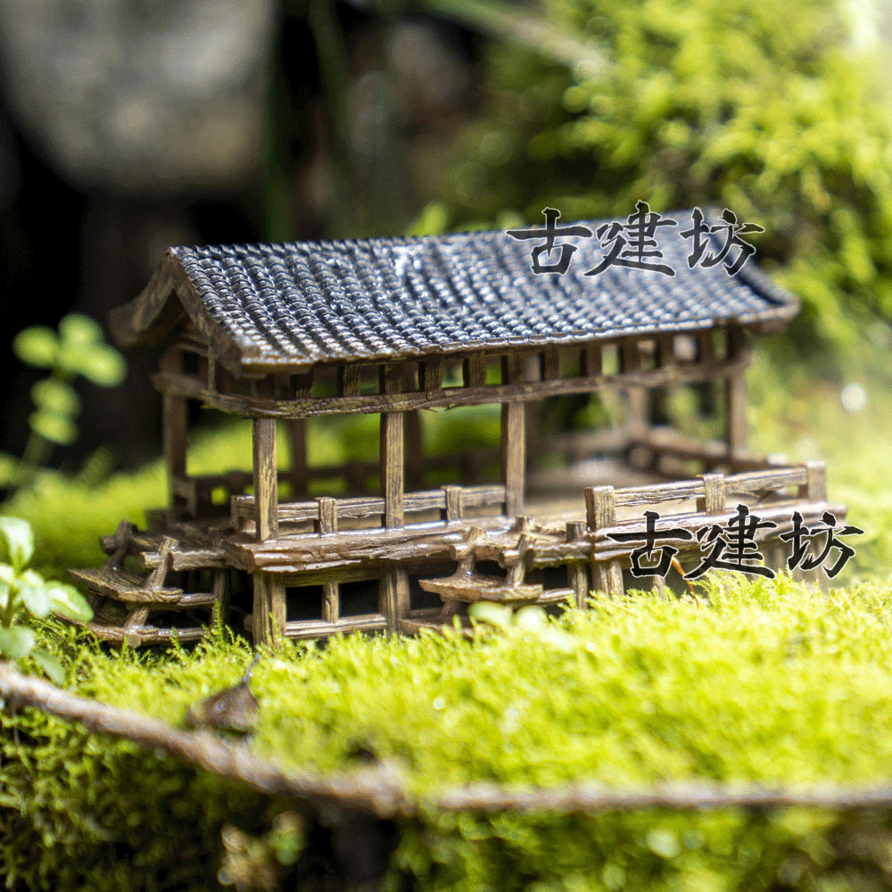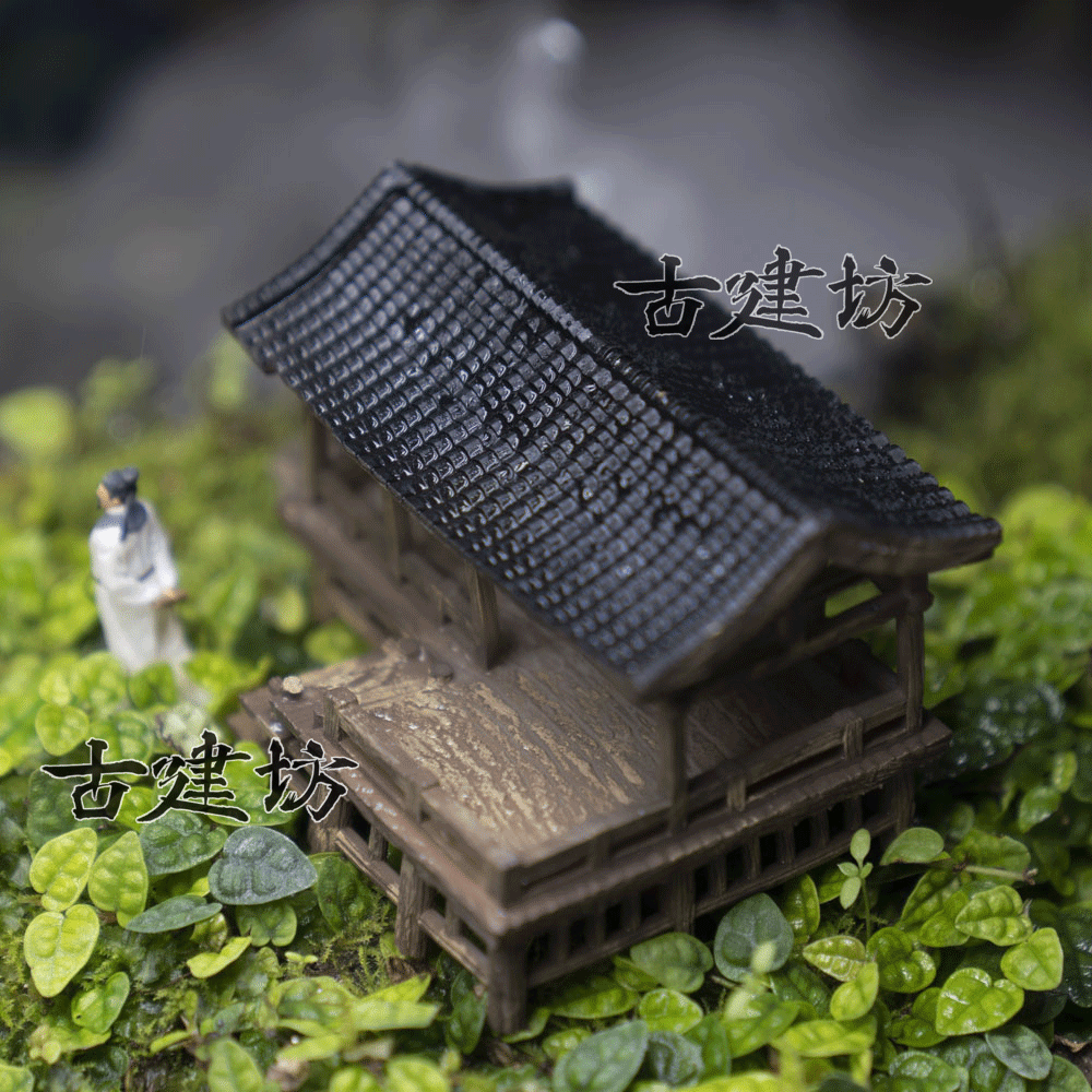 古建坊鱼缸造景微景观盆景假山古风建筑凉亭3D打印树脂摆件模型中