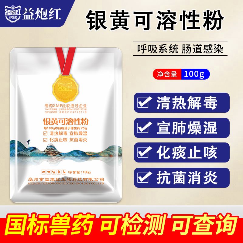 益炮红银黄可溶性粉兽用鸡鸭鹅鸽子禽用清热疏风解发热流感兽药