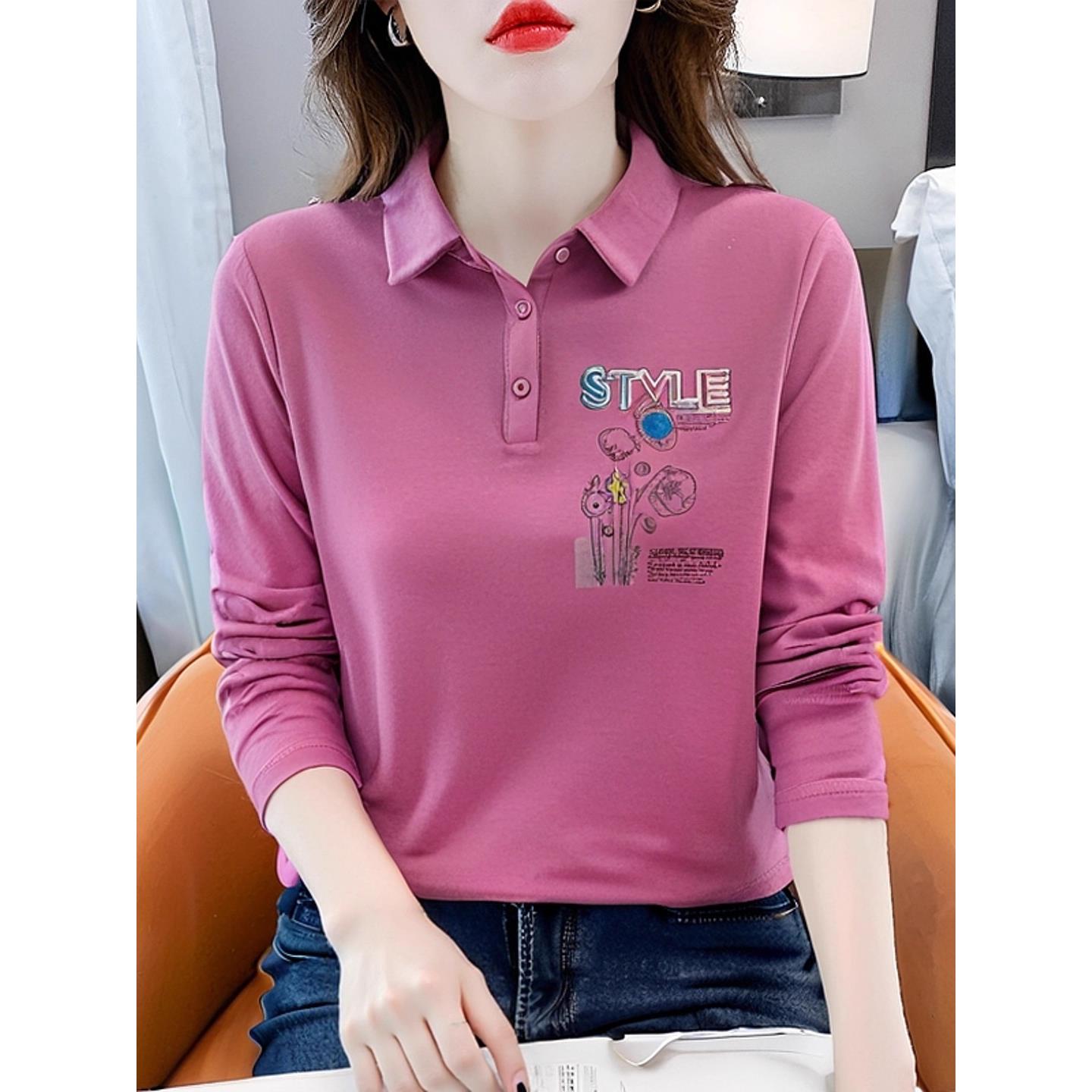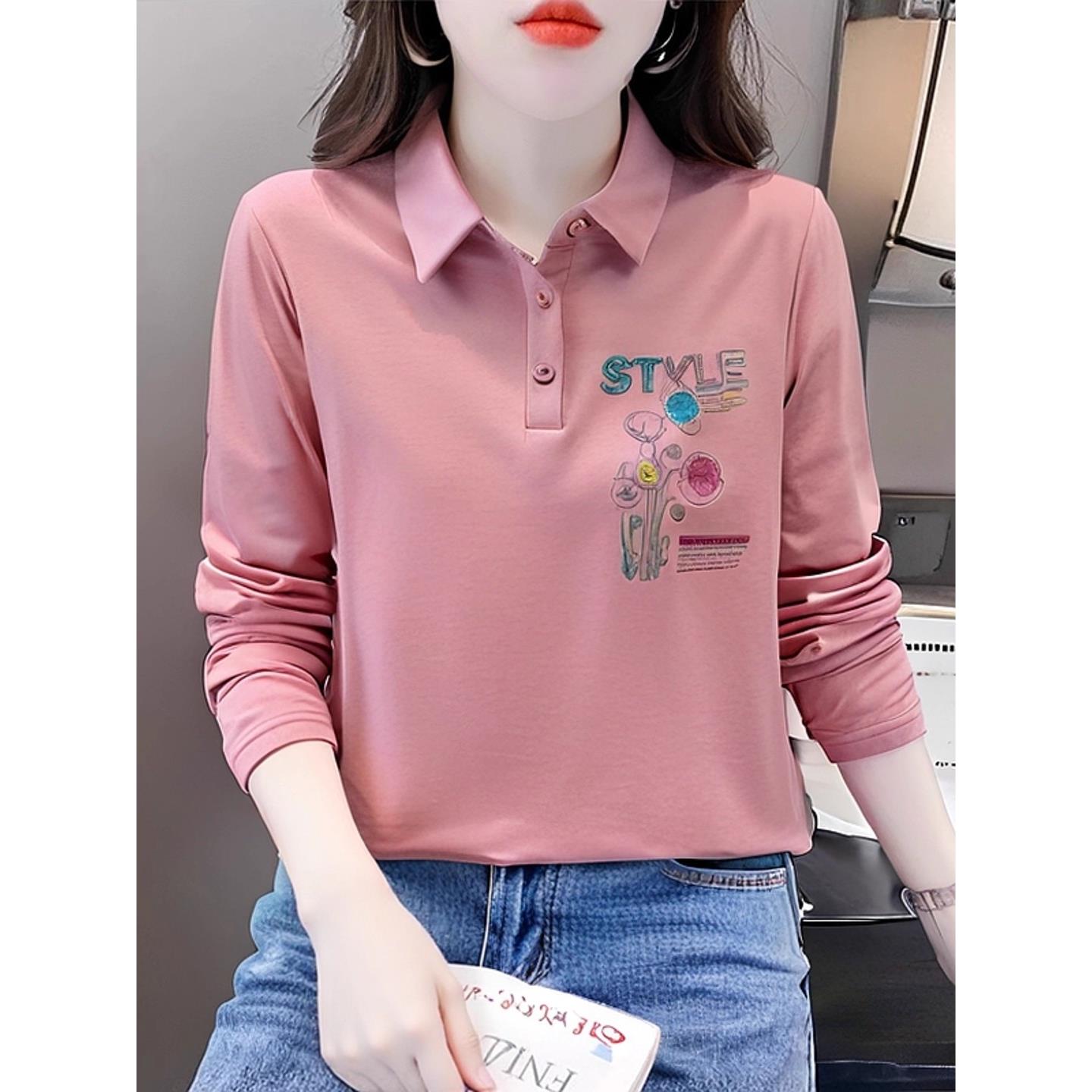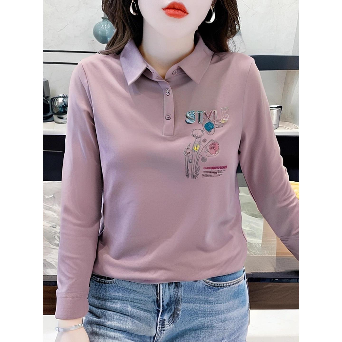 ROUMIKL长袖t恤女刺绣设计感宽松上衣2025新款中年女装妈妈装秋季 - 时尚生活轻奢女装