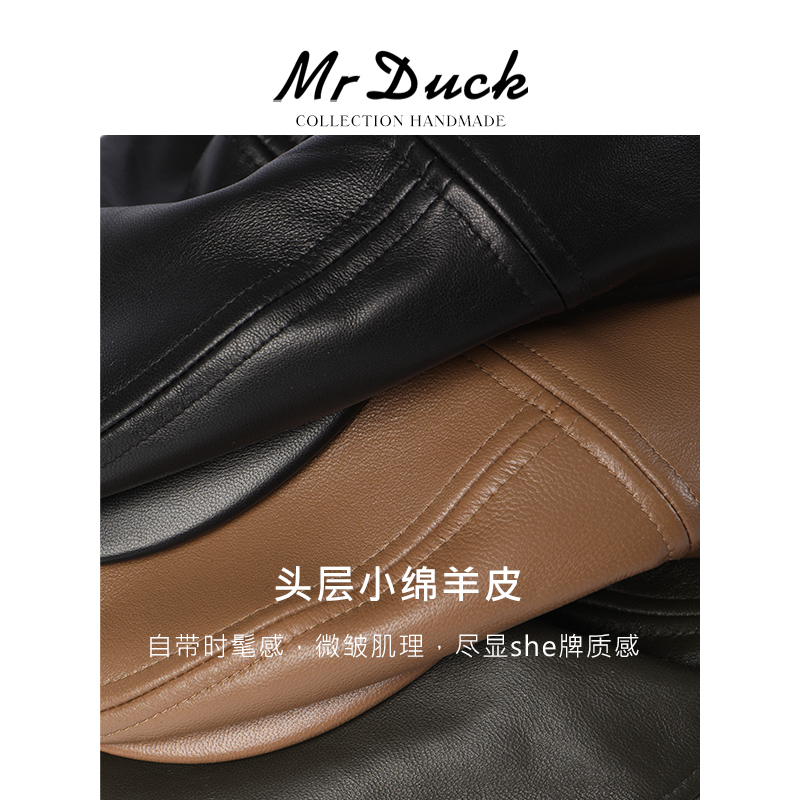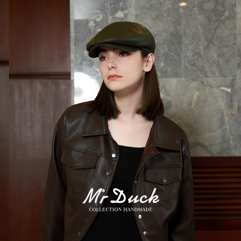 mrduck设计师CHAO柔软小绵羊皮鸭舌帽 真皮大头围前进帽女 四季款 - mrduck旗舰店