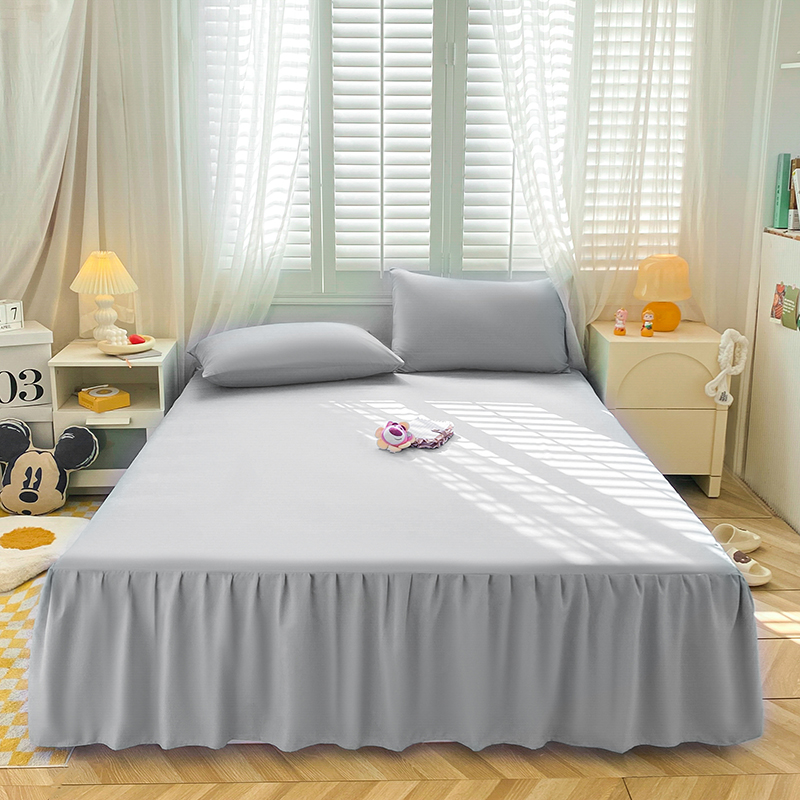 床裙式磨毛床罩单件防尘保护套床单防滑床套纯色水洗W棉枕套三件 - tb685920376016
