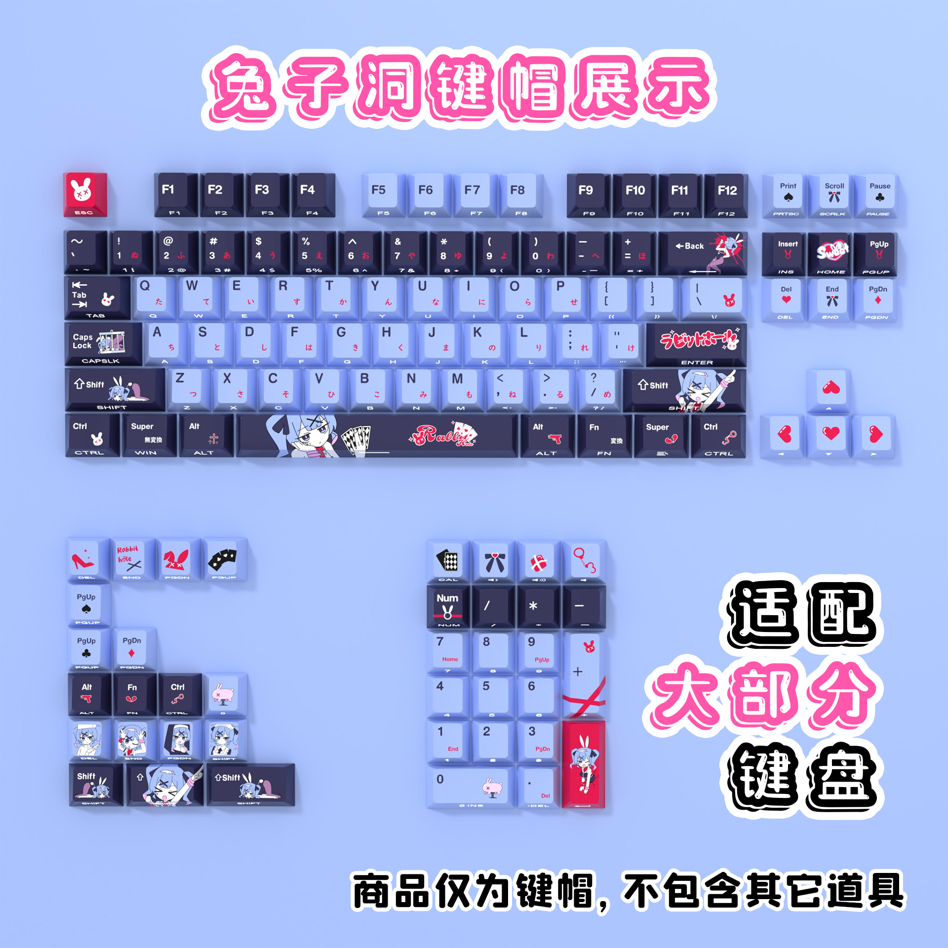 兔子洞侧刻原厂透光键帽小全套PBT热升华适配ROG夜魔美加狮woot - 何氏数码专营店