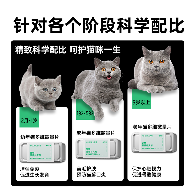 猫咪维生素微量元素片营养补充剂预防掉毛猫用复合维生素片bNUCAT - 欣欣宠物医院