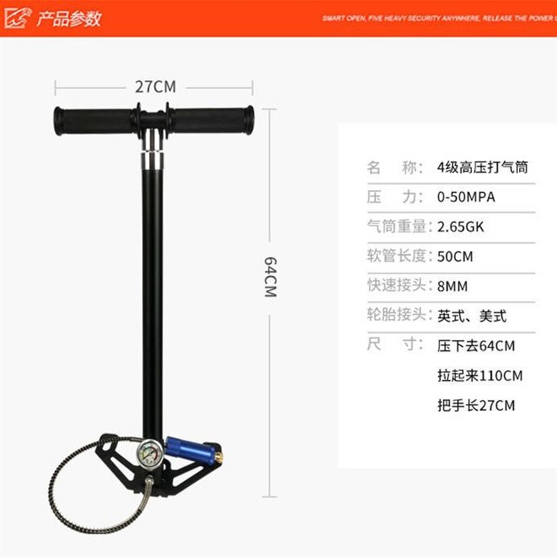 4级高压打气筒30mp40mpa汽车充气泵不锈钢气筒高压30个压超强气瓶 - tb07589138635