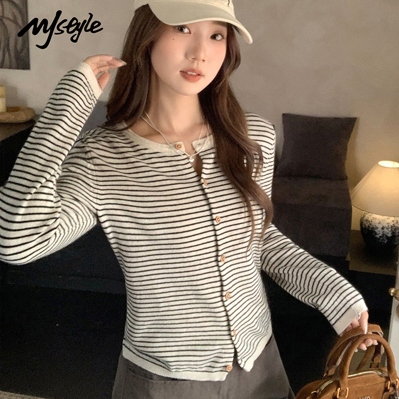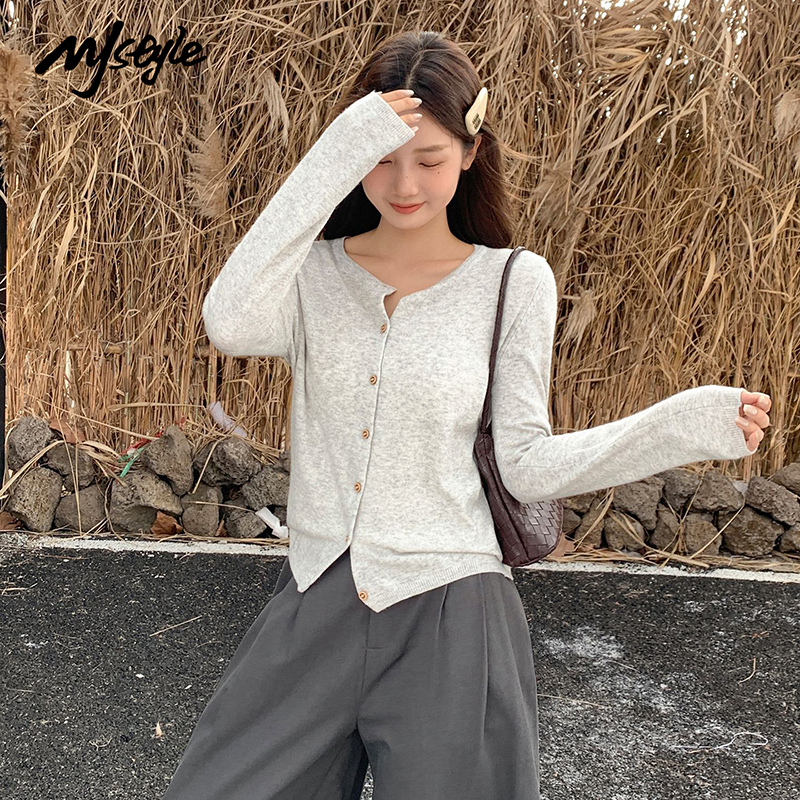 MJ STYLE韩系排扣针织开衫女2025秋季新款上衣小众设计感打底衫 - MJSTYLE服饰旗舰店