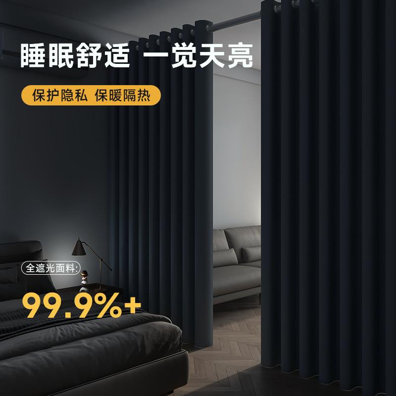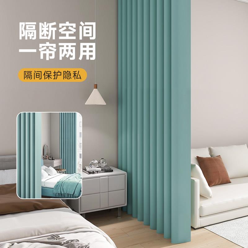 客厅改卧室空调隔断帘遮挡布帘窗帘免打孔分隔出租房房间门帘屏风 - d[s177844285]