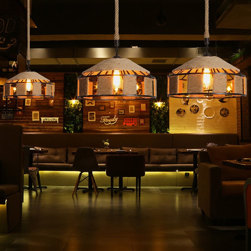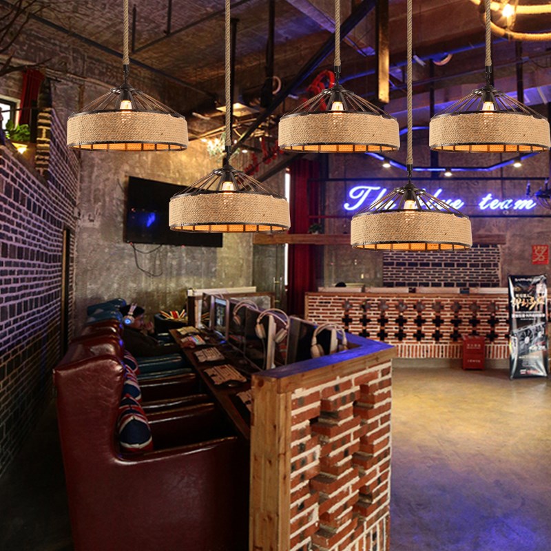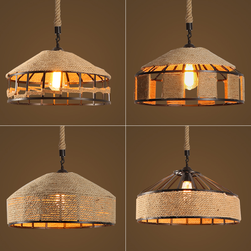 复古工业风麻绳吊灯酒吧餐厅咖啡厅网咖商场店铺蒙古包铁艺麻绳灯 - 湖海民宿馆