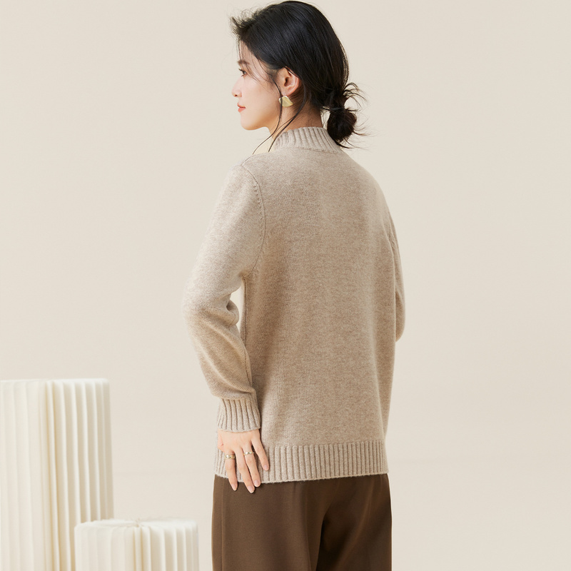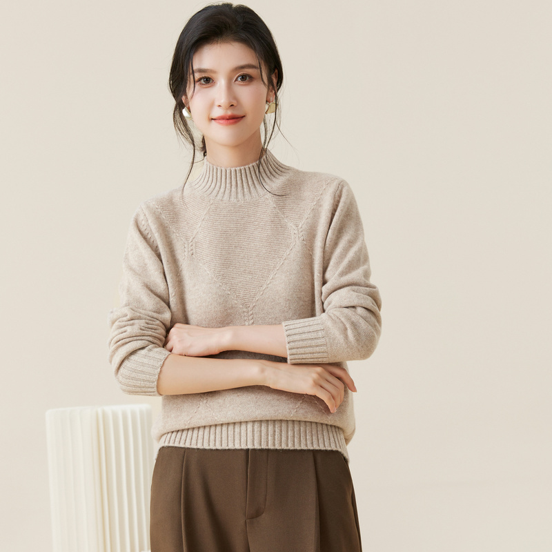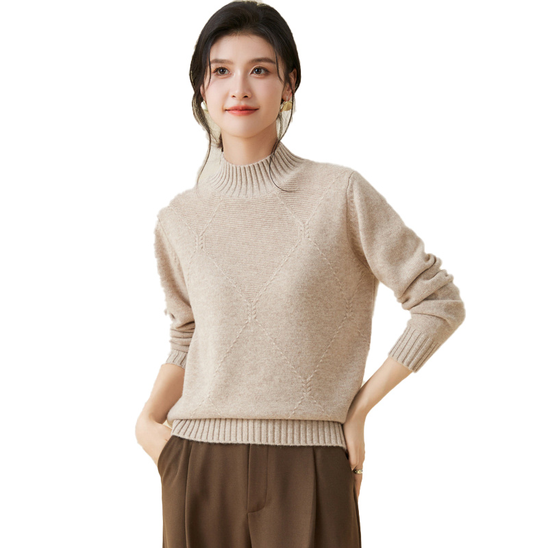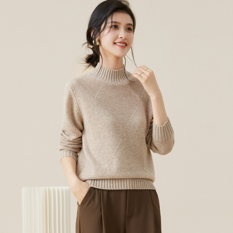金菊【多色可选】羊毛衫女100%羊毛新款毛衣半高领大格纹纯色上衣 - 金菊旗舰店