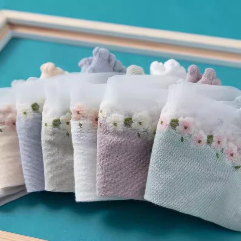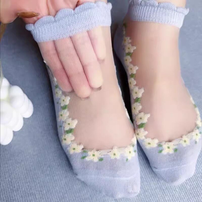 袜子女薄款卡丝袜夏季女式镂空玻璃丝花边水晶船袜吸汗短筒袜中筒 - 扶光万锦优选