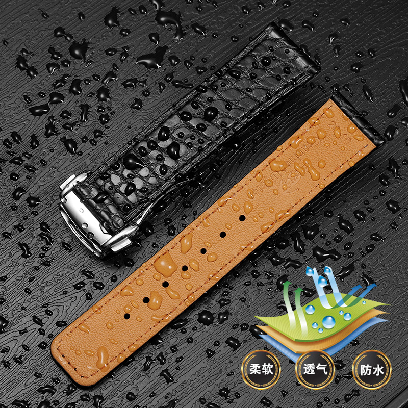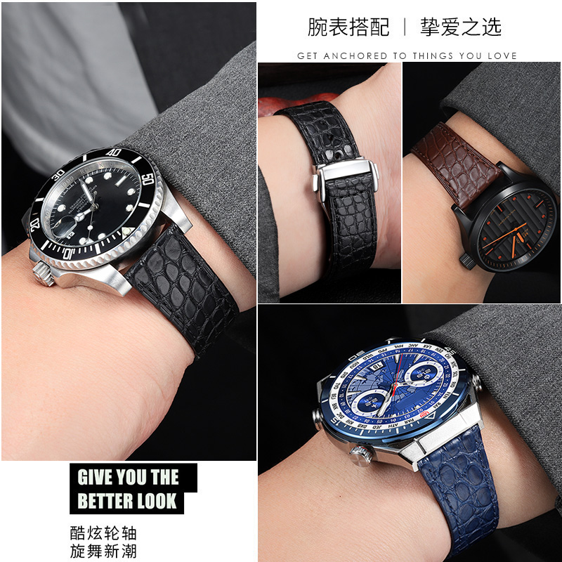 适配卡西欧真皮手表带EFS-S510 EFR-303 BEM-506快拆鳄鱼皮手表链 - 梦瑶表配