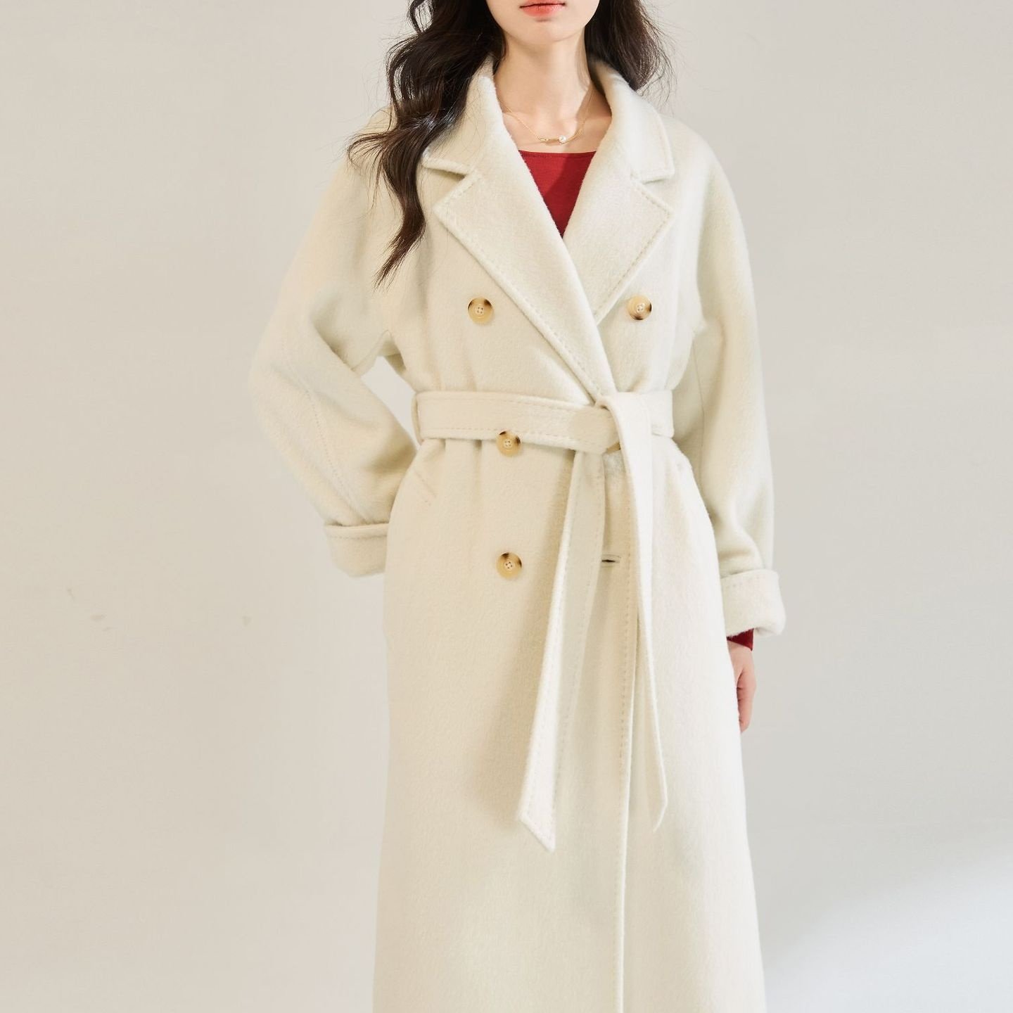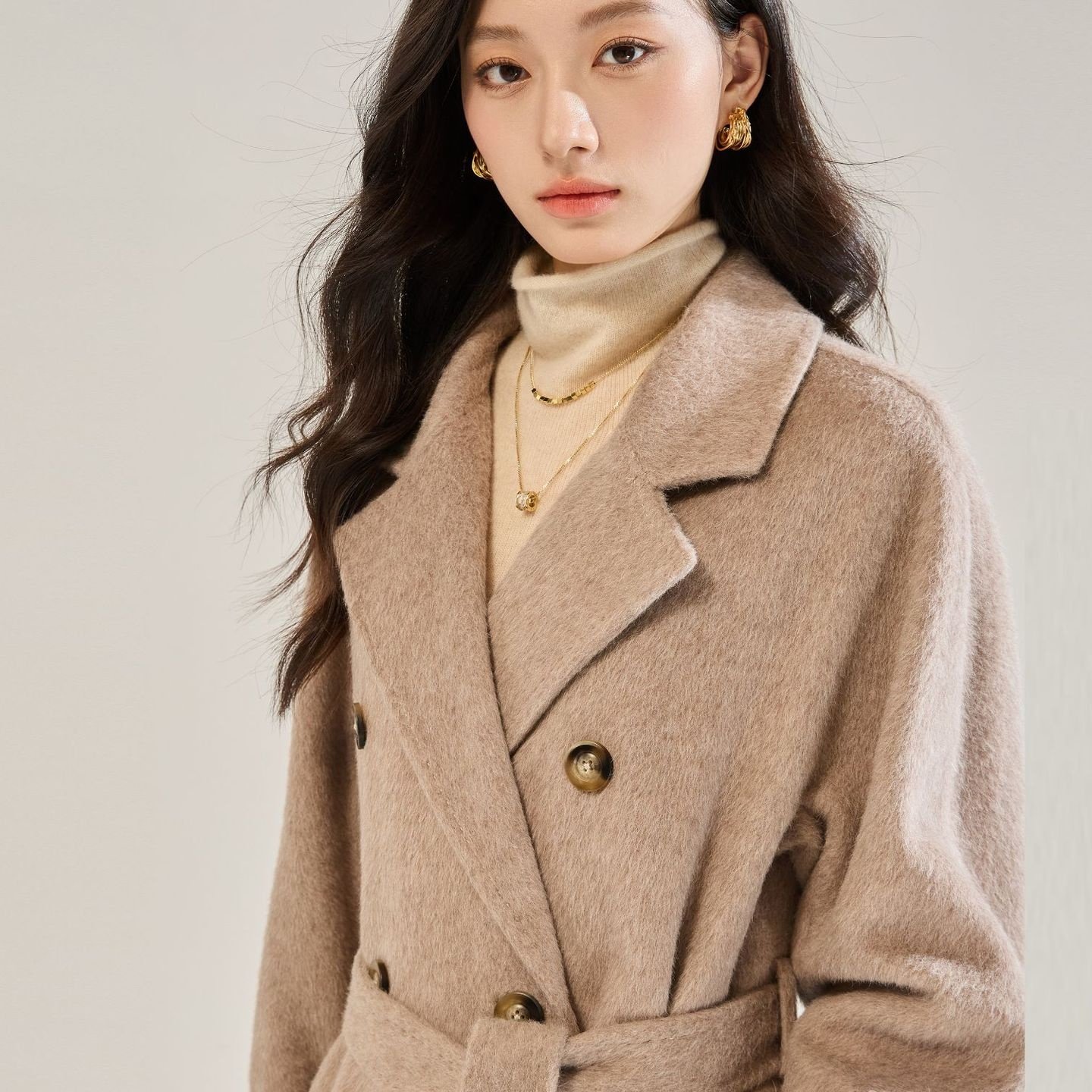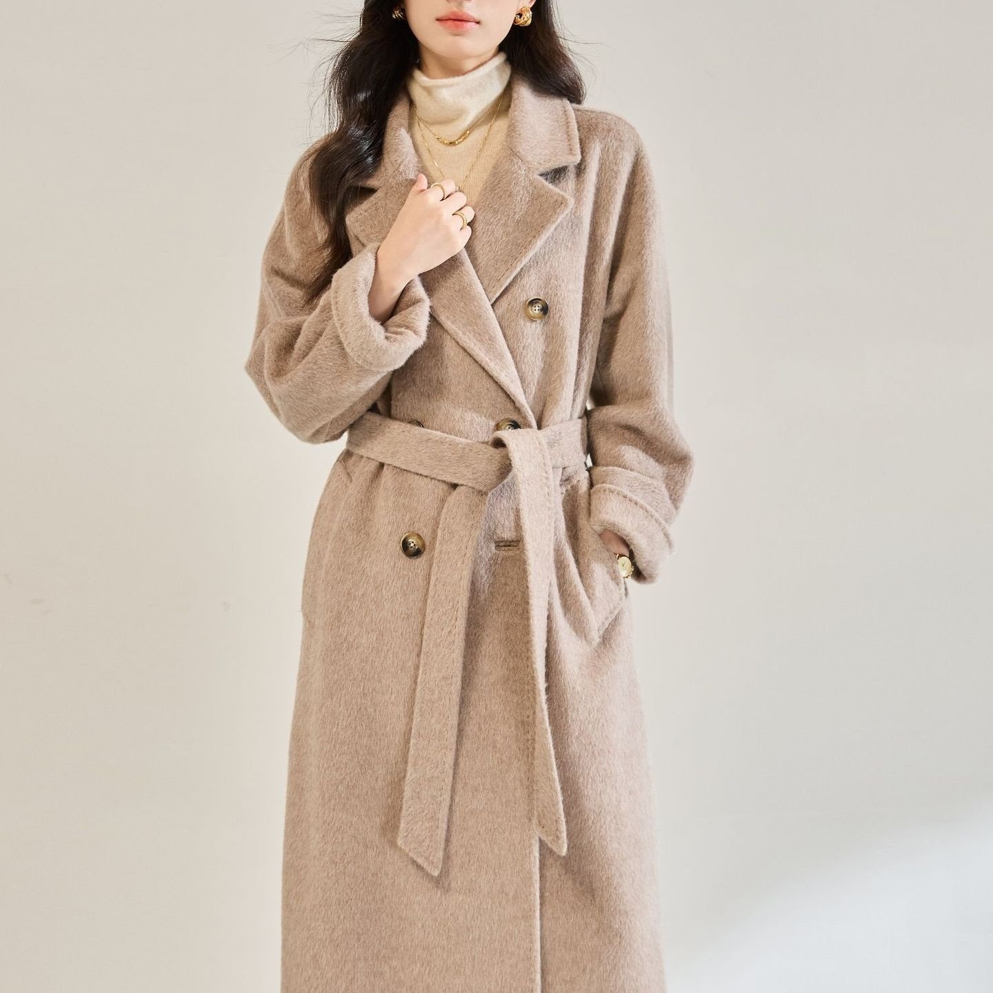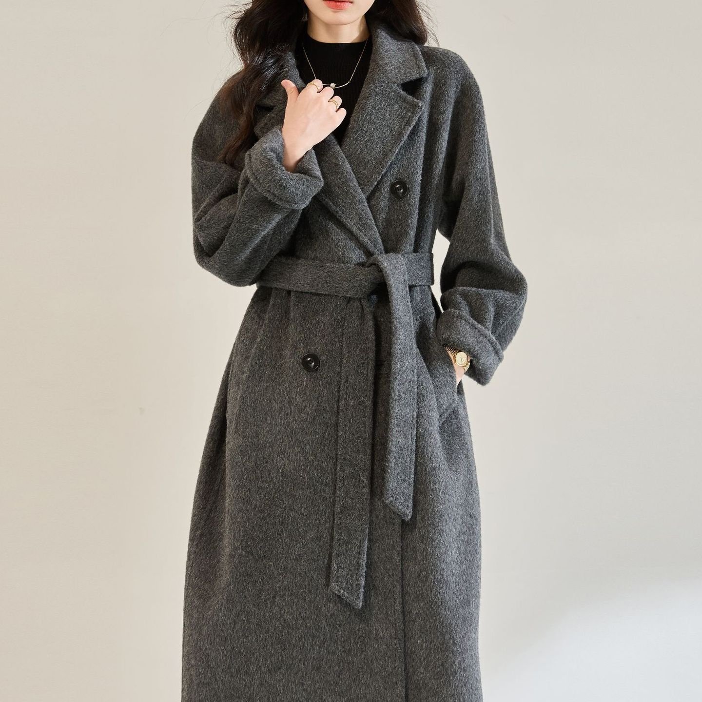 优质#25秋冬新气质感长毛苏丽羊毛系带毛呢外套中长款大衣女22673 - 小雅美美哒服装店