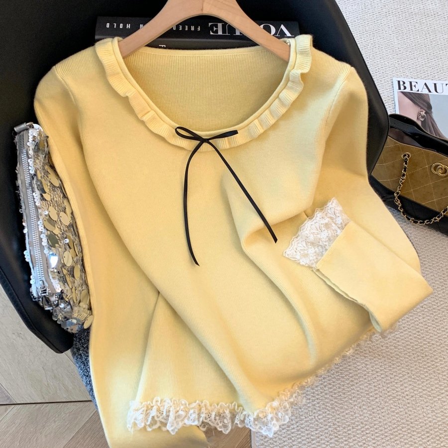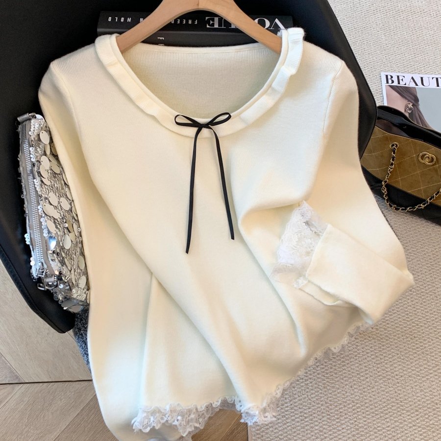秋冬季新款韩版时尚百搭显瘦设计感甜美减龄圆领上衣针织衫 - 桃喜衣柜