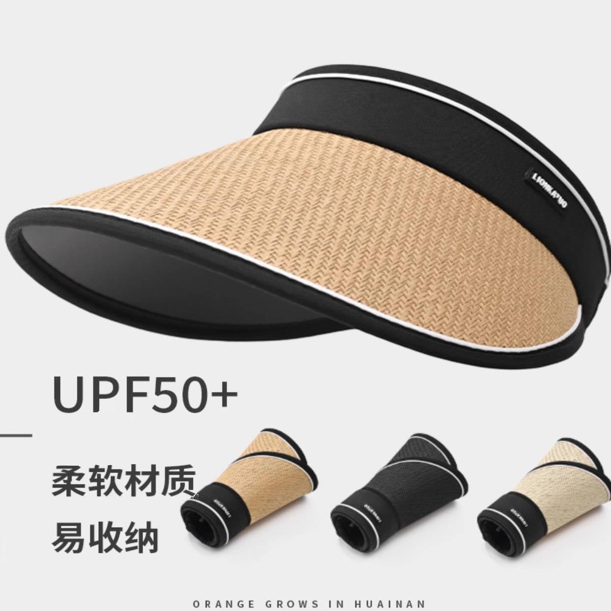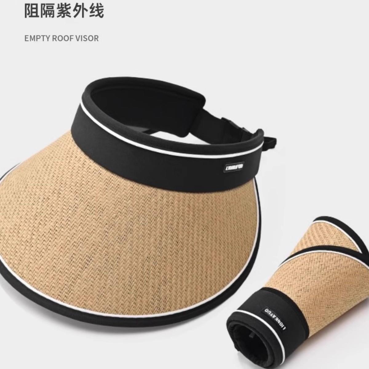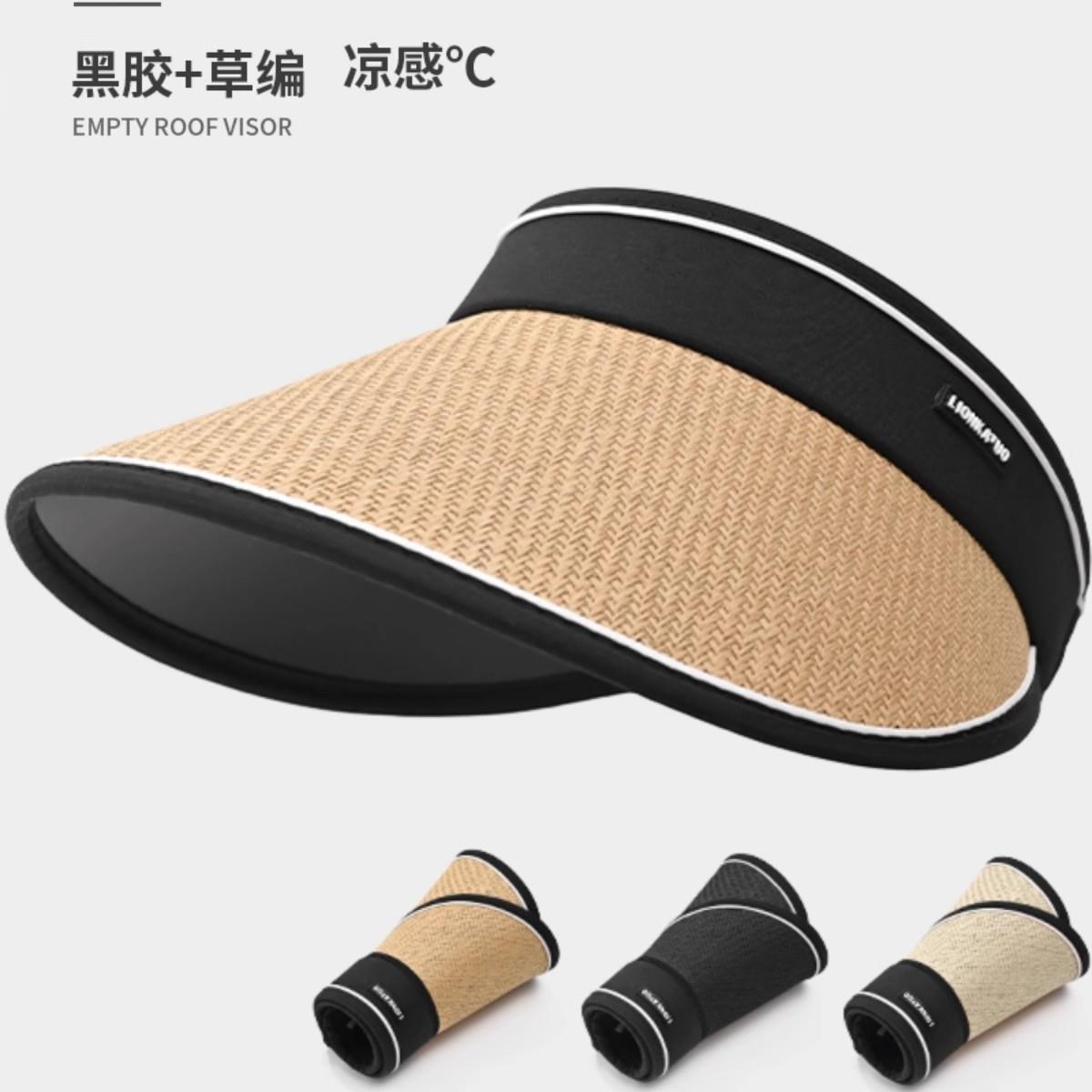 黑胶空顶草帽女夏季可折叠大帽檐遮阳防晒帽沙滩防紫外线太阳帽子 - 高登哲枫廖专卖店